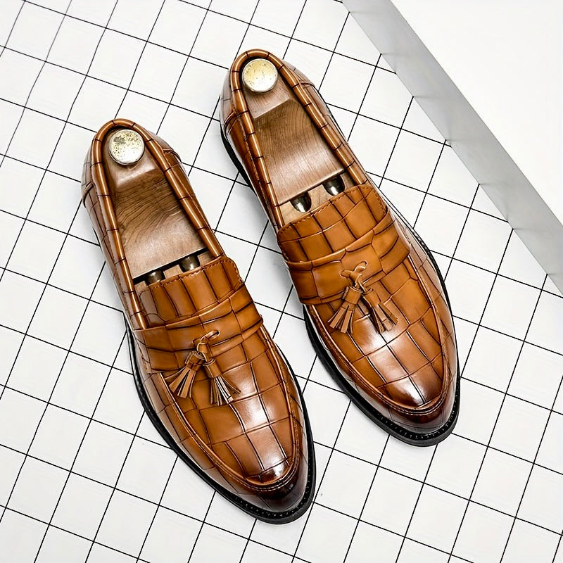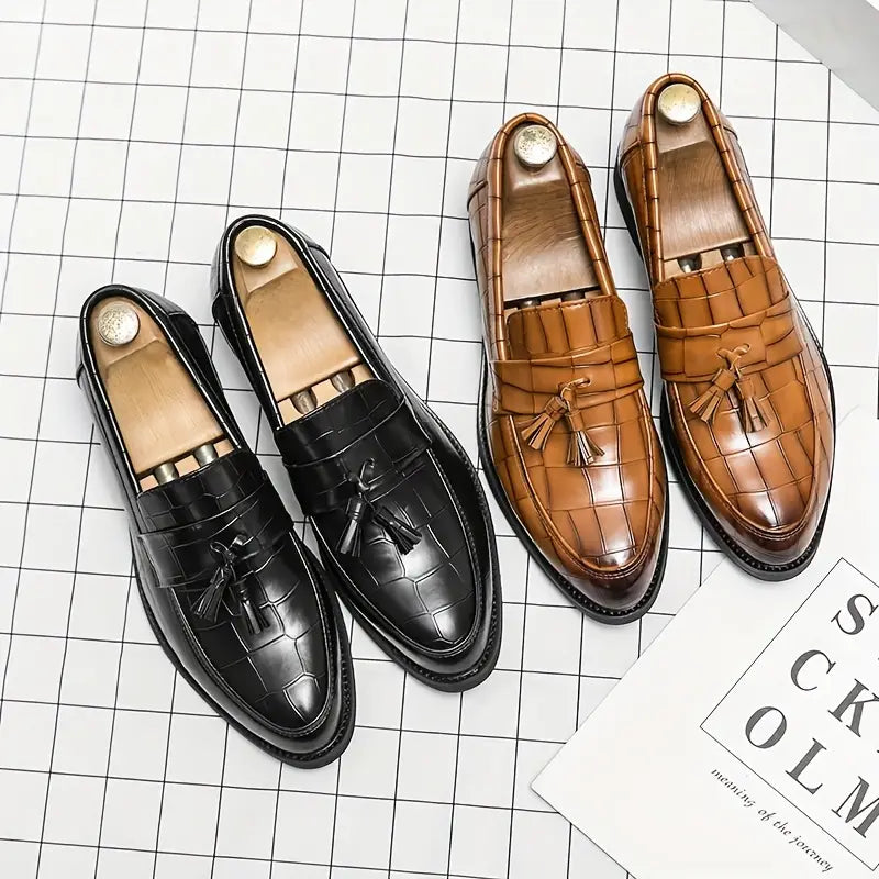 Expertenhaft gestaltet für den anspruchsvollen Einzelnen, sind diese exquisiten Lederschuhe aus hochwertigem, vollnarbigem Leder gefertigt und zeigen eine Silhouette, die Raffinesse und Anmut verkörpert. Sie wechseln nahtlos von Tag zu Abend und steigern Ihr Selbstbewusstsein und Ihren Stil mit jedem Schritt, wodurch sie die perfekte Ergänzung zu jedem Ensemble sind, sei es bei der Arbeit, einem romantischen Abendessen oder einem besonderen Anlass.