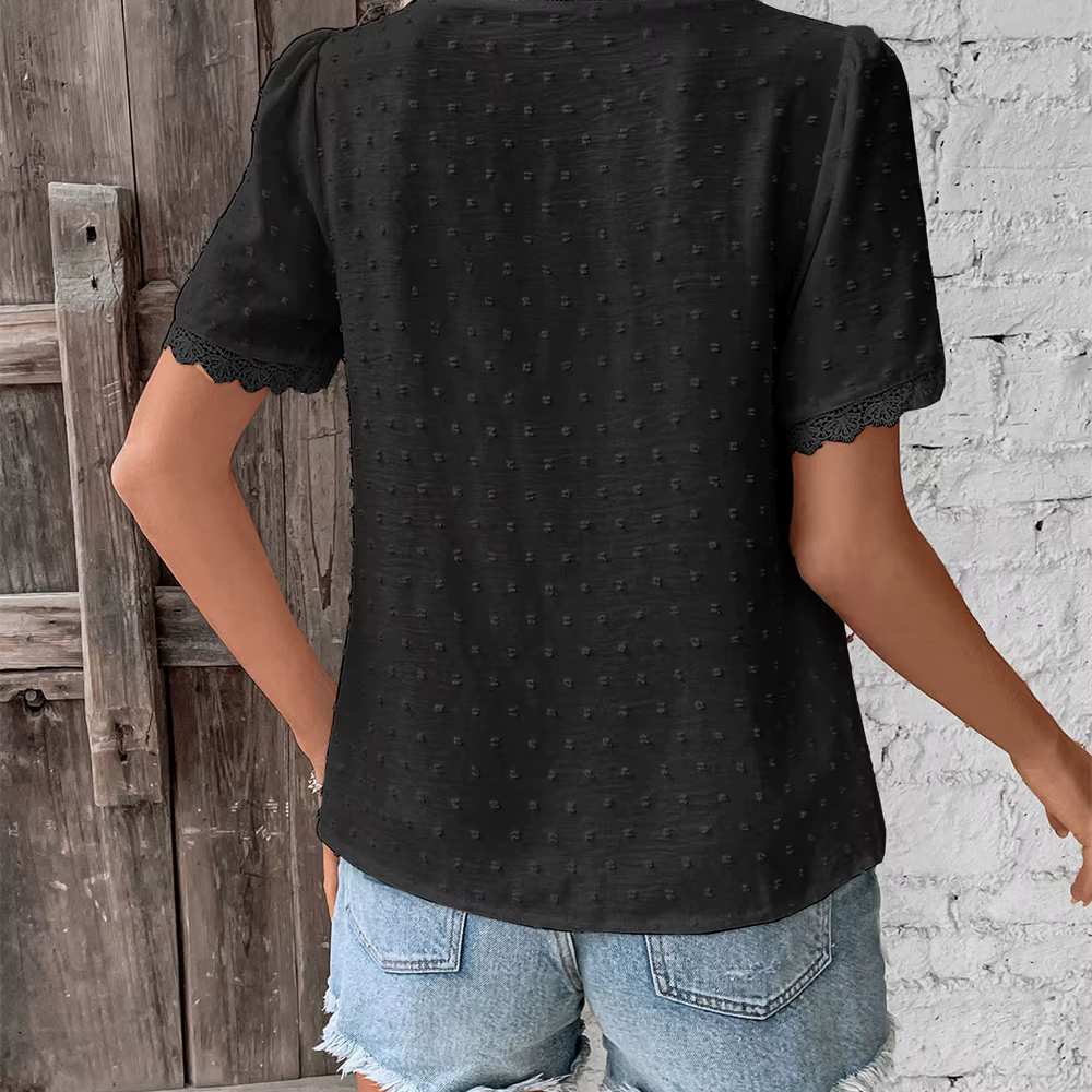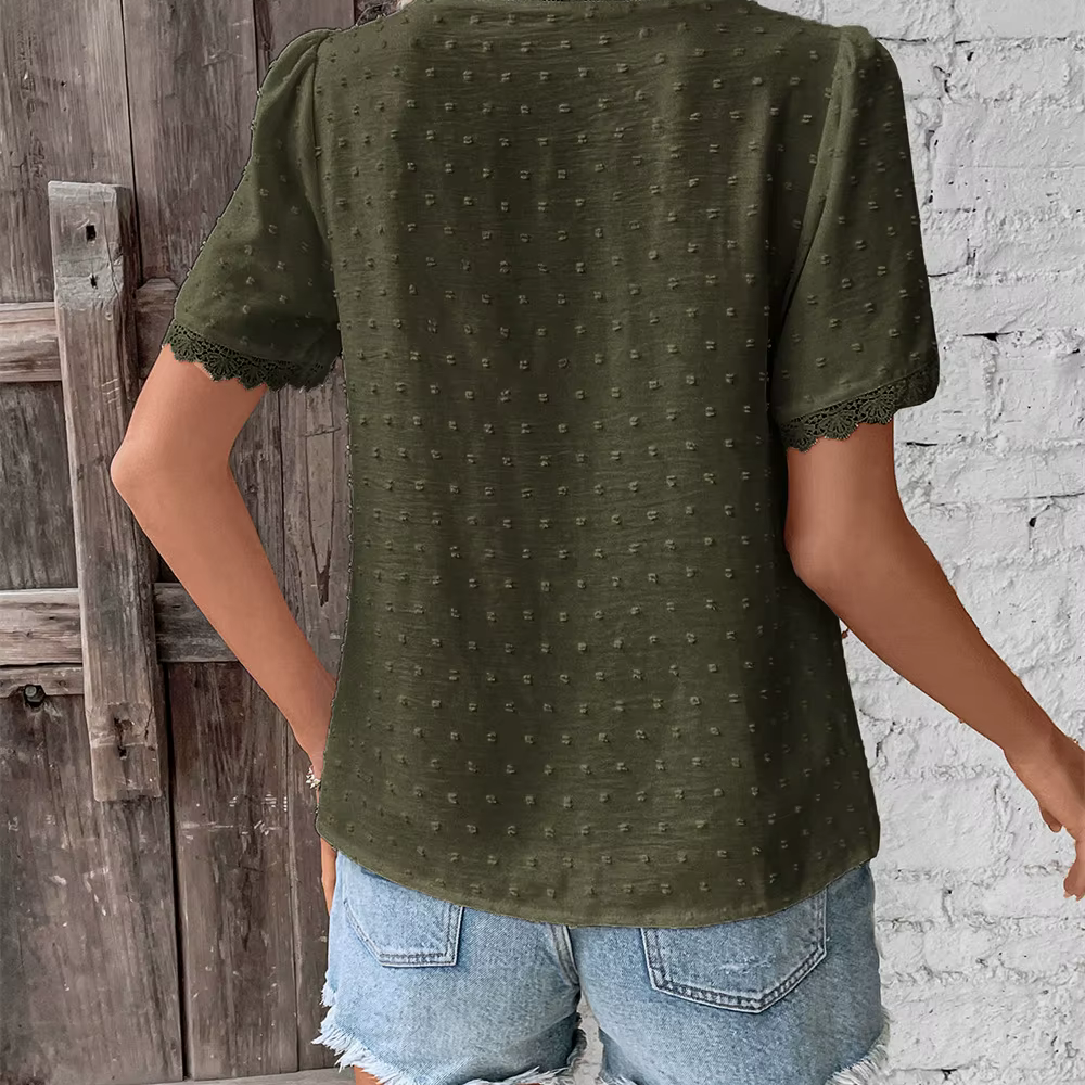 Die Aliya-Bluse ist eine Hommage an den Sommer: mit feiner Spitze, verspielter Struktur und einer leichten, lockeren Passform. Ideal für sonnige Spaziergänge, Aperitifs am Meer oder Momente der Ruhe – sie verleiht jedem Look eine poetische Leichtigkeit.