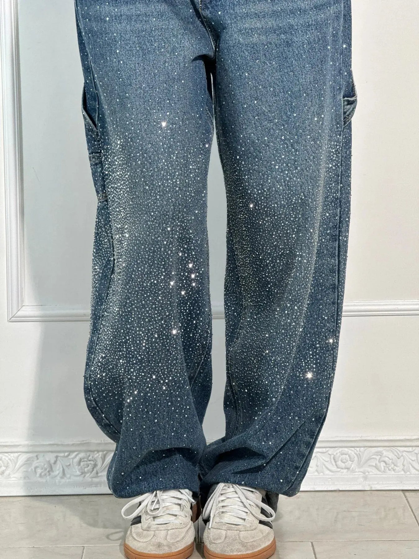 Entdecke die moderne Eleganz mit den Aliyah™ – Weit geschnittenen Jeans für Damen, entworfen für diejenigen, die sich stilvoll abheben möchten. Diese Jeans kombinieren einen weiten Crazy Fit mit einem dezenten Glanz, um eine Silhouette zu schaffen, die deine Kurven elegant betont. Die eingefassten Schmucksteine verleihen einen raffinierten Glanz und erhellen jede deiner Bewegungen.