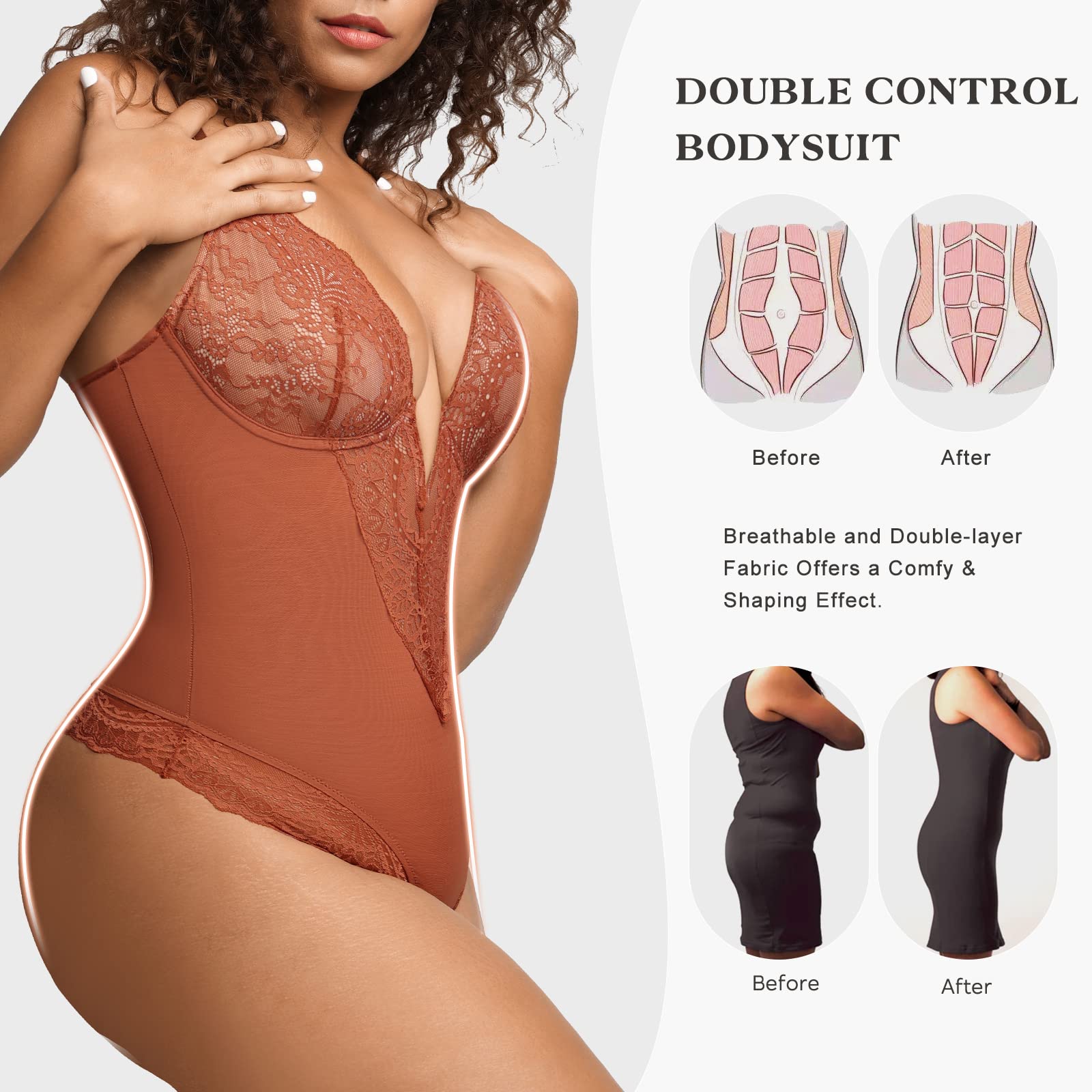 • Kompressionsfutter für große Bauchkontrolle, die hilft, Ihre Taille zu betonen.