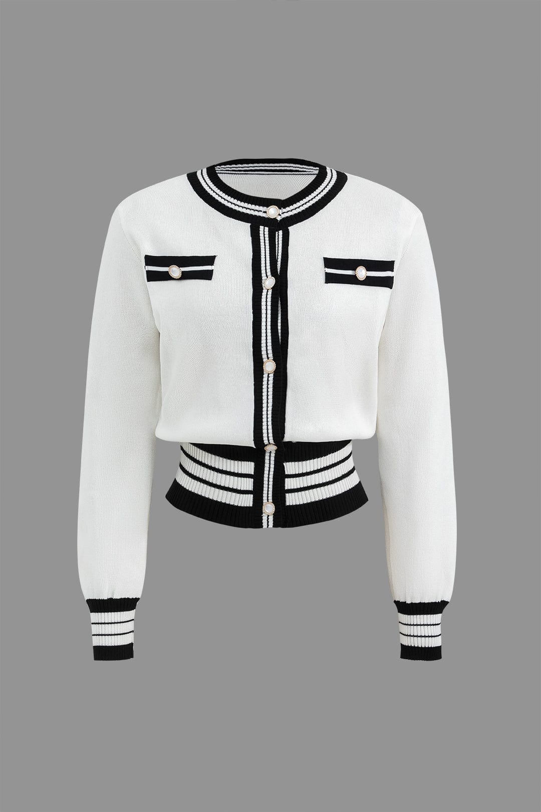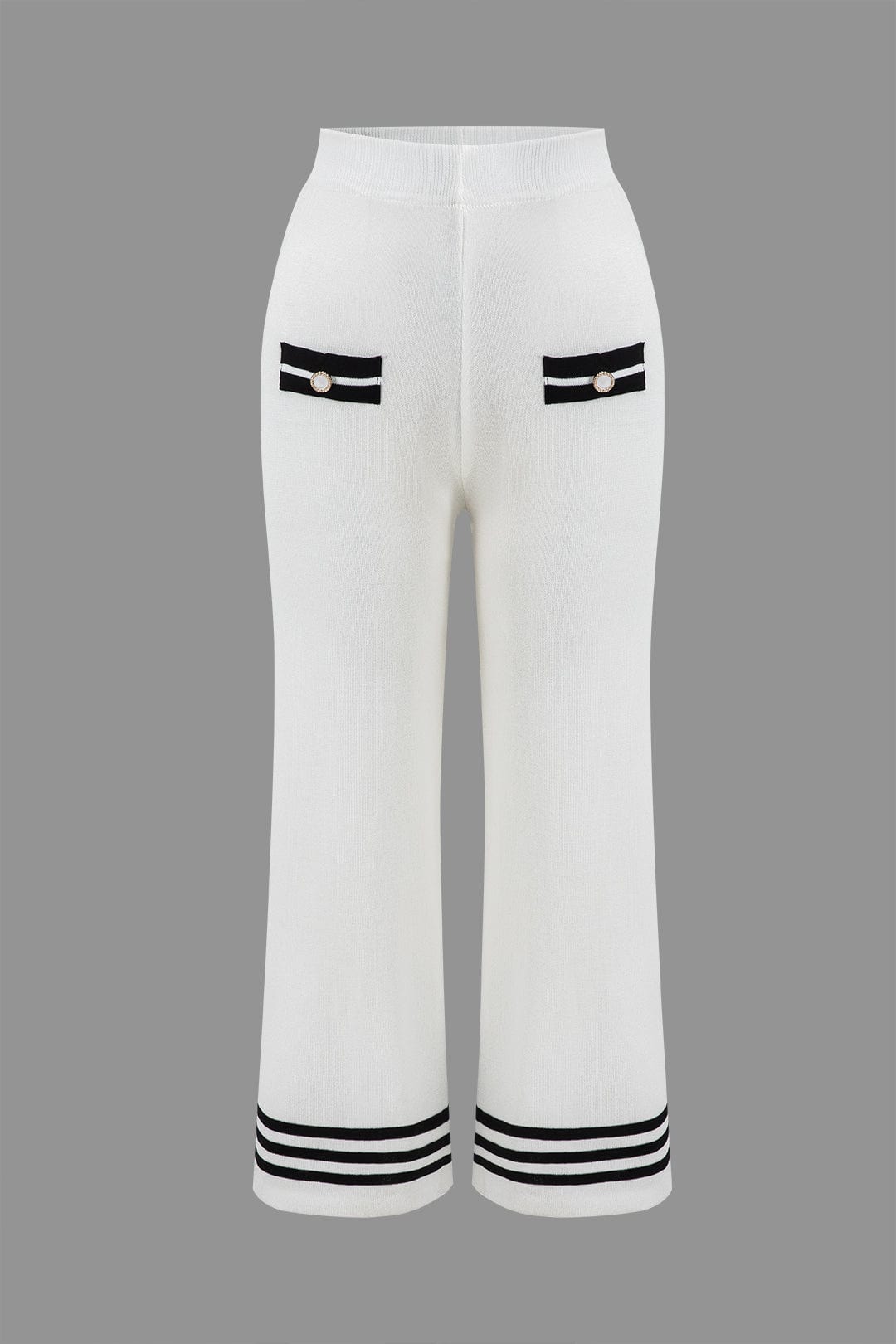 Das Ariella Zweiteiler-Set kombiniert klassischen Chic mit modernem Strick-Design. Der figurbetonte Cropped-Cardigan mit kontrastierenden Details und Perlenknöpfen verleiht dem Look eine elegante Note, während die weite Hose mit dekorativen Taschen für einen stilvollen und bequemen Sitz sorgt. Perfekt für Casual-Chic, elegante Freizeitlooks oder stilvolle Office-Outfits.