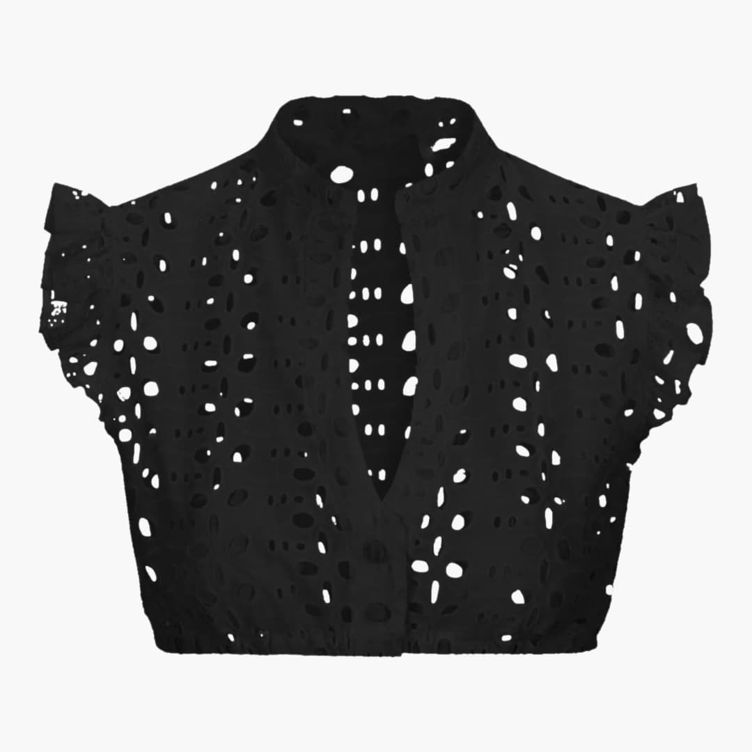 • Strukturiertes Muster: Durchgehende Lochstickerei sorgt für eine feine, gleichmäßige Oberflächenoptik.