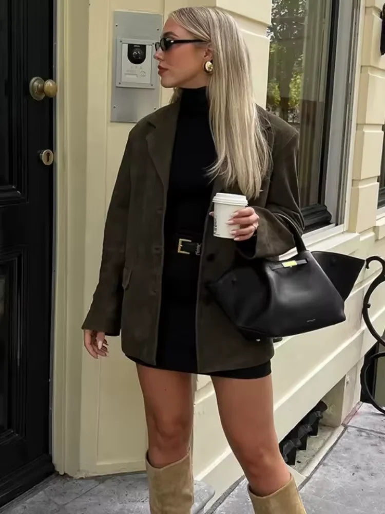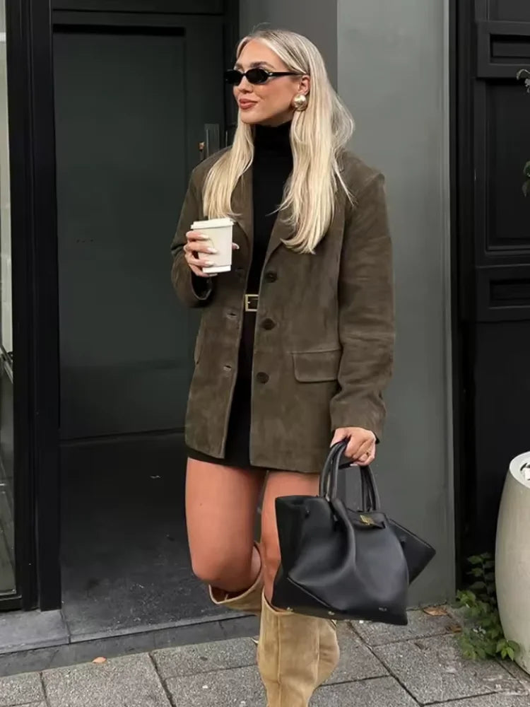 Brauner Damenblazer aus Wildleder mit Knöpfen