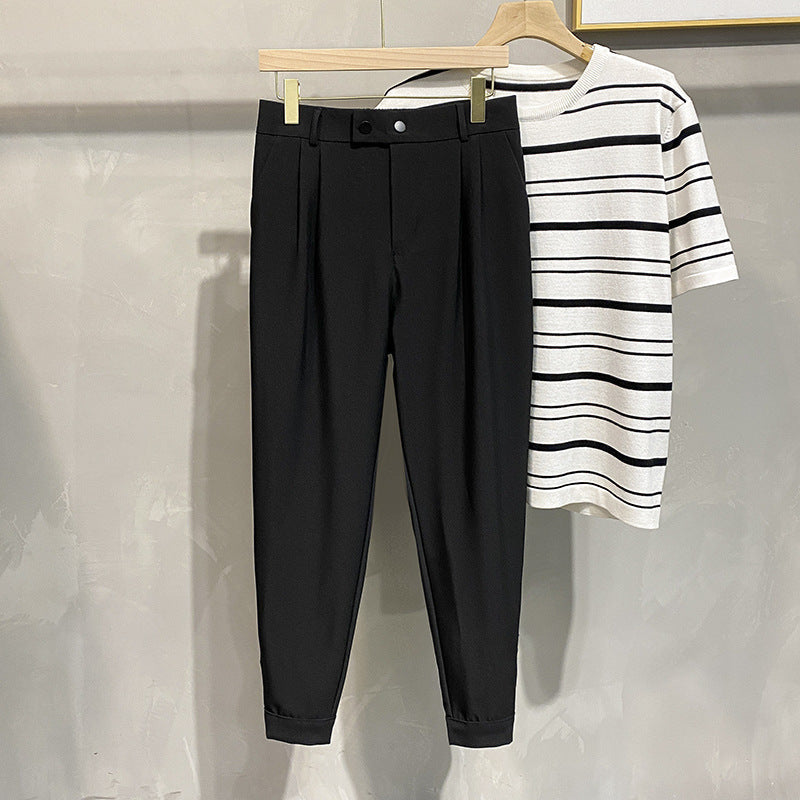Die schlanke Silhouette und der slightly tapered Saum verleihen einen modernen Look, während der elastische Schnitt Bewegungsfreiheit garantiert. Diese Hosen zeichnen sich durch ihre Funktionalität aus, ohne den Stil zu comprometieren, und stellen ein wesentliches Element in der Garderobe eines jeden dar.