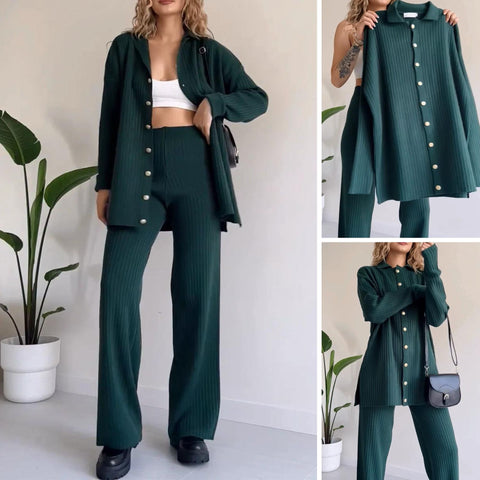 Zeitloses Gestaltung für jeden Tag: Die minimalen Knopfdetails, die gerippte Textur und die klassischen Farben machen dieses Setz zu einem unverzichtbaren Bestandteil der Garderobe. Es ist eine Investition in Stil und Funktionalität, die nie aus der Mode kommt.