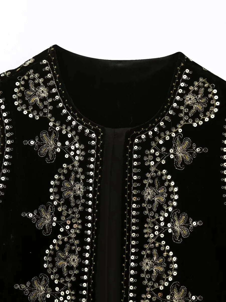 - Elegant: Die filigrane Stickerei und der luxuriöse Samt verleihen jedem Outfit eine anspruchsvolle Note.