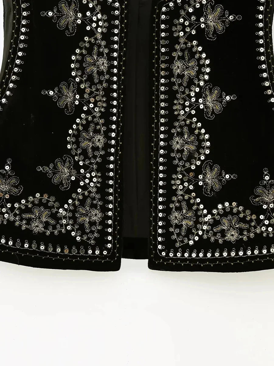 Hüllen Sie sich in Luxus mit der Celina Bestickten Samtweste. Mit filigraner Stickerei und aus hochwertigem Samt gefertigt, verleiht diese Weste jedem Outfit einen Hauch von Eleganz und Raffinesse. Ob für formelle Anlässe oder zur Aufwertung Ihres Alltagsstils, diese Weste ist Ihre Wahl für einen gepflegten Look.