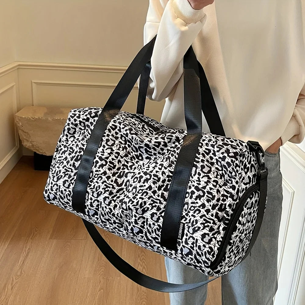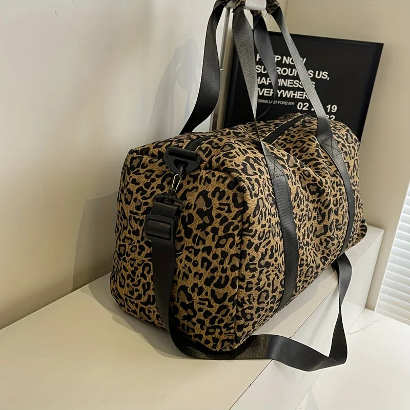 diese sportlich-elegante reisetasche im leopardenmuster ist der perfekte begleiter für wochenendausflüge oder den alltag. das strapazierfähige canvas-material sorgt für langlebigkeit, während das auffällige design deinem look eine trendige note verleiht – stilvoll, funktional und modisch zugleich.