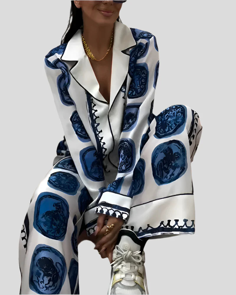 Das Cleo Geometrisch Koordinierte Set kombiniert auffällige Muster mit einer entspannten Silhouette und bietet einen kühnen, aber bequemen Look. Perfekt für Spaziergänge in der Stadt oder ungezwungene Treffen sorgt dieses zweiteilige Set dafür, dass du mühelos aus der Menge hervorstichst.