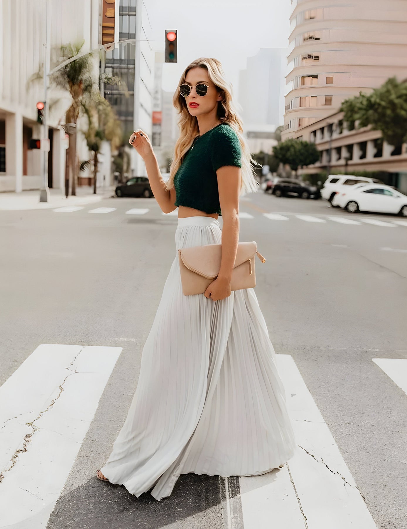 Der lange Rock für Damen ist der perfekte Begleiter für den Sommer. Hergestellt aus fließender Viskose, bietet er ein angenehmes Tragegefühl und maximale Bewegungsfreiheit. Der lockere A-Linien-Schnitt schmeichelt der Figur und sorgt für eine feminine Silhouette. Mit einem elastischen Bund und feinen Falten kombiniert dieser Rock Komfort mit Stil und eignet sich ideal für warme Tage.