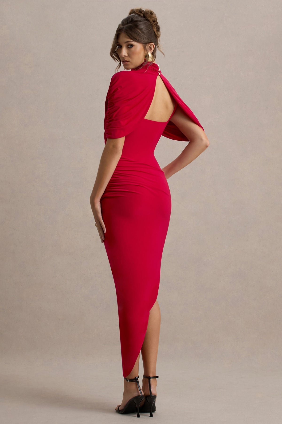 Drapiertes Midikleid – Figurbetontes Abendkleid mit Stehkragen & Cape-Detail