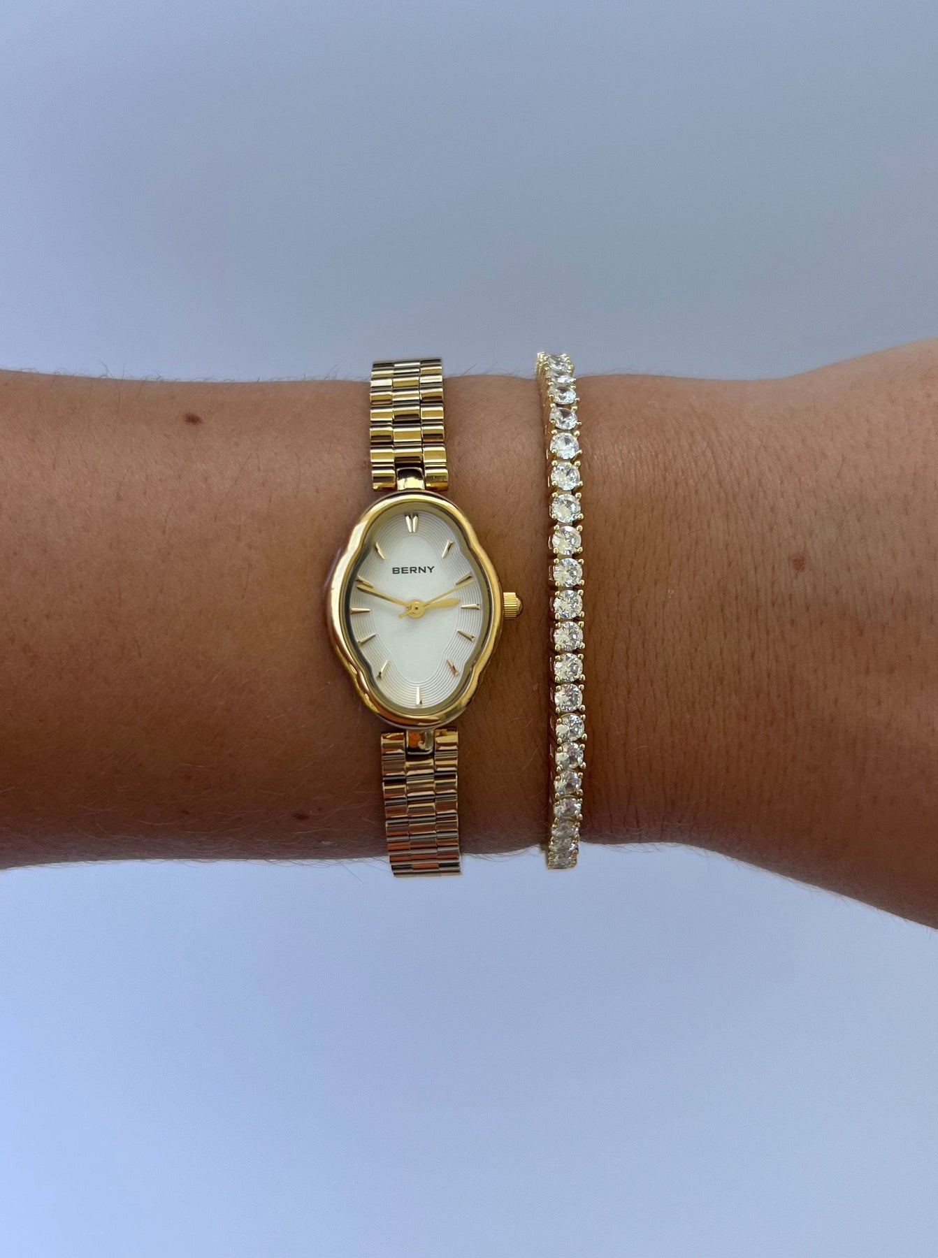 Entdecken Sie die perfekte Verschmelzung von klassischem Design und modernem Luxus. Diese exquisite Damen Armbanduhr vereint vintage Charme mit zeitgenössischer Raffinesse. Das goldene Gehäuse und das filigrane Zifferblatt machen sie zum idealen Begleiter für jeden Anlass.