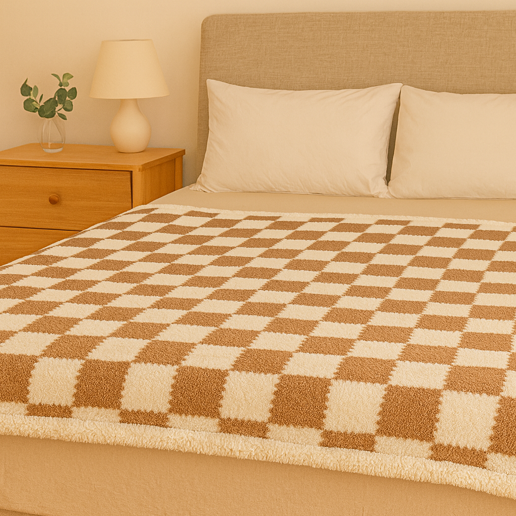 Eleganter, schieferkarierter Plüschüberwurf – Wende-Doppelschichtdecke