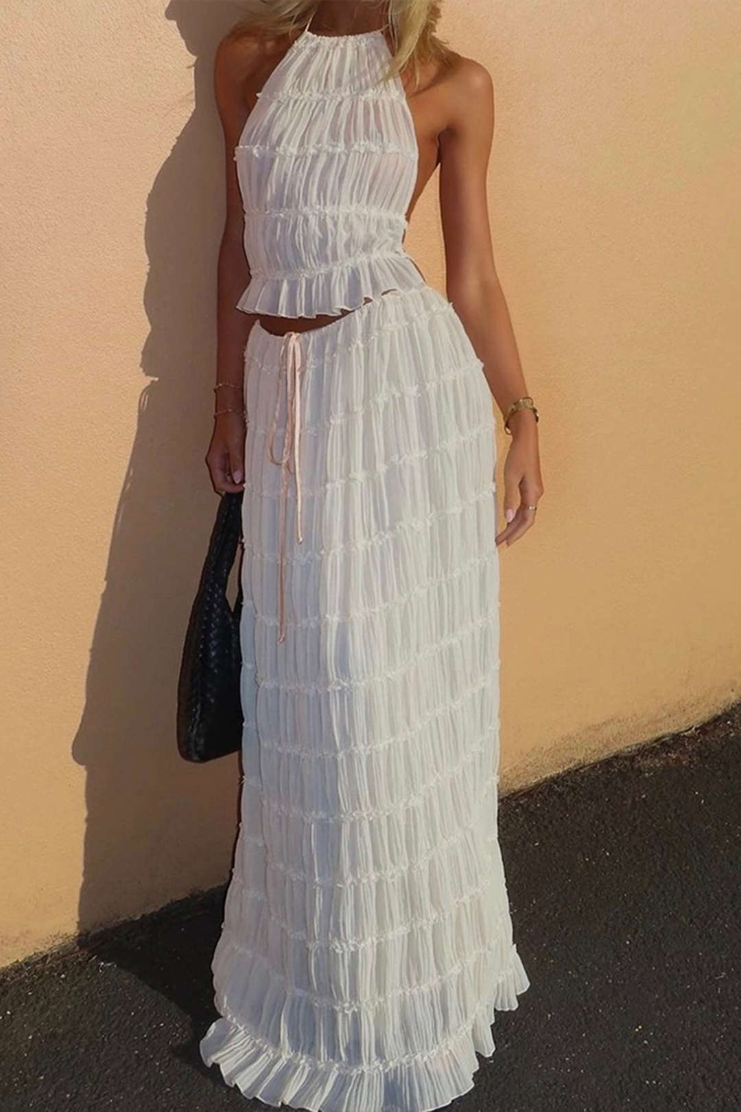 Elise | Romantisches Zweiteiler-Set mit Plissee-Top & Maxirock