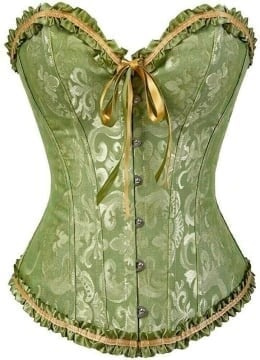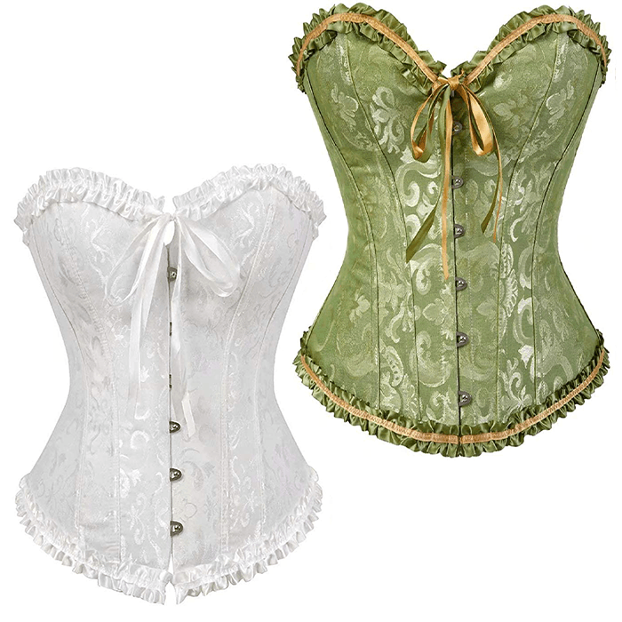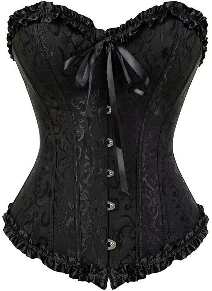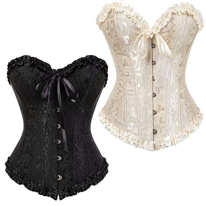Es unterstützt und betont dein Dekolleté, hat eine Vorderseite mit Haken- und Ösenverschluss und eine Schnürung auf der Rückseite, Kunststoffstäbchen zur Unterstützung, bequeme Satin-Corsage, die die Linien von Taille und Brust vollständig zur Geltung bringt.