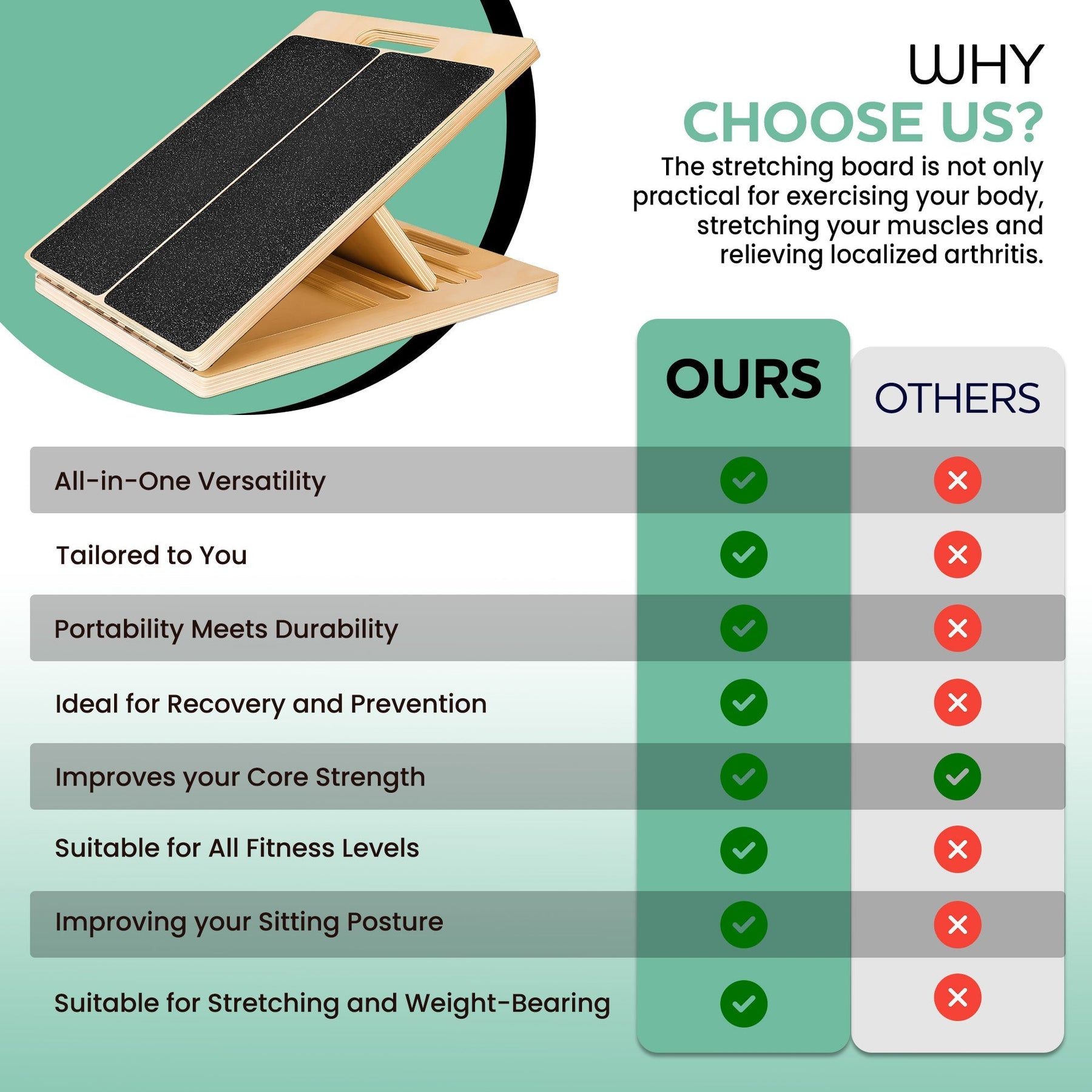 Verbessern Sie Ihr Training mit diesem tragbaren und verstellbaren Schrägbrett. Perfekt für jedes Trainingsniveau – verwandelt alltägliche Dehnübungen in effektive Workouts, die stärken und schützen. Ein Muss für Ihre Fitnessausrüstung.