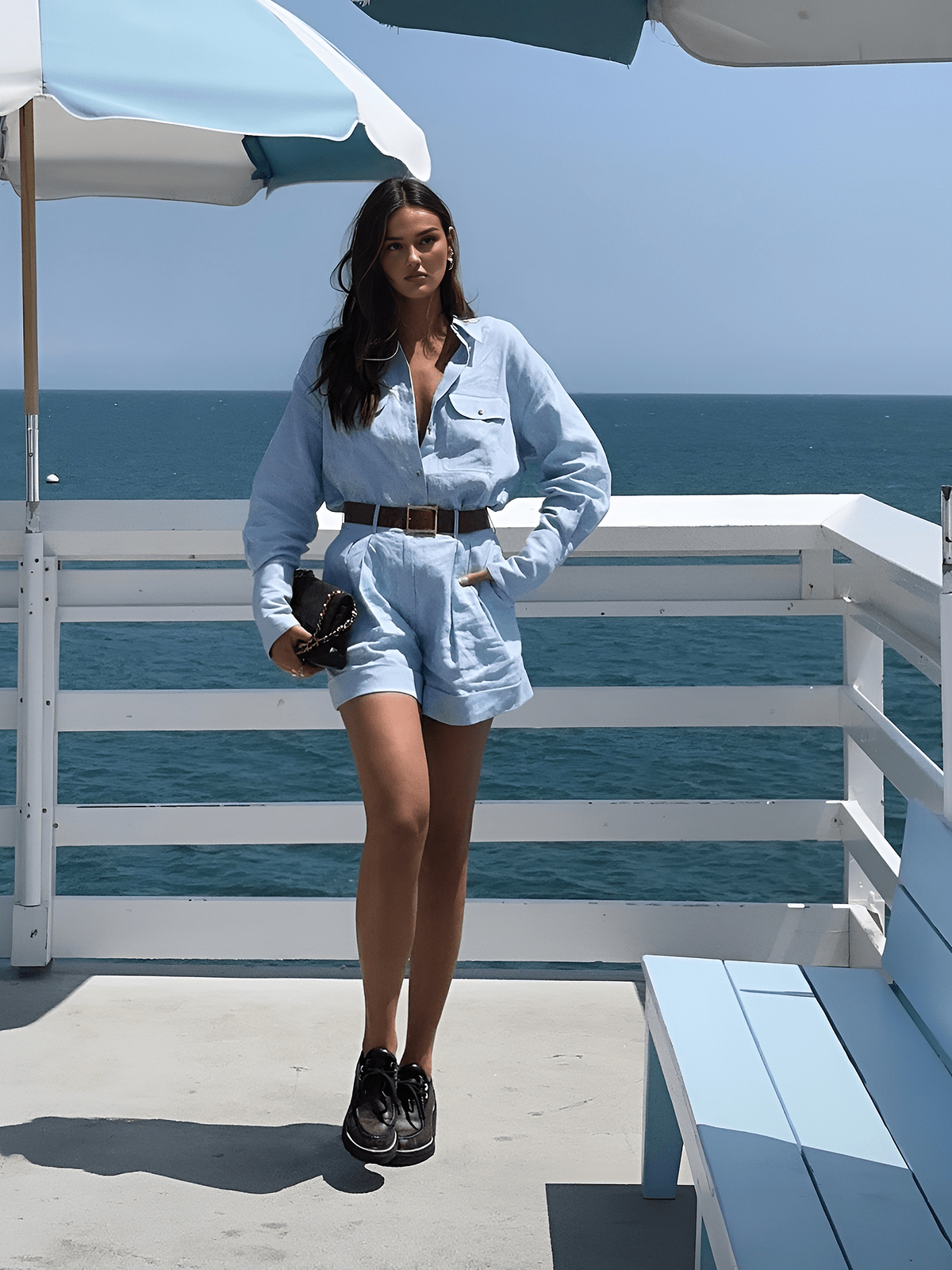 Das Gabriele Set kombiniert lässige Eleganz mit sommerlicher Leichtigkeit. Das locker geschnittene Oversized-Hemd mit Brusttaschen verleiht dem Look eine moderne Note, während die High-Waist-Shorts mit Bundfalten und Umschlägen für eine schmeichelhafte Silhouette sorgen. Perfekt für warme Tage – ob am Strand, in der Stadt oder bei einem entspannten Treffen mit Freunden.