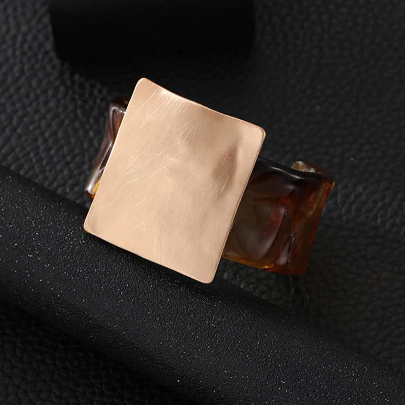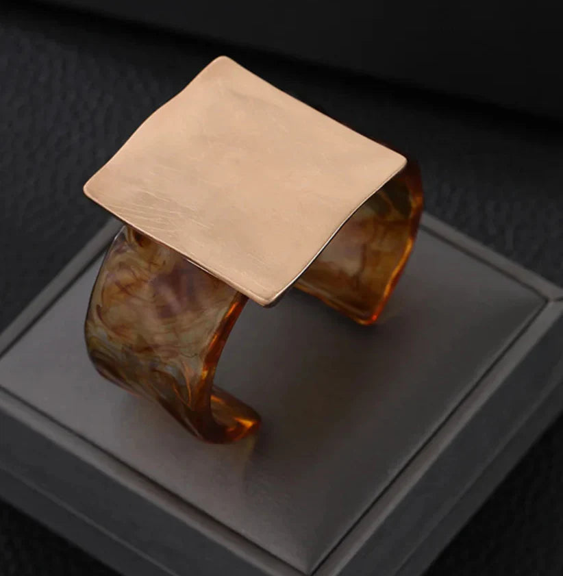 Dieser außergewöhnliche Armreif vereint modernes Design mit zeitloser Eleganz. Die geometrischen Formen aus hochwertigem Harz werden durch edle Gold- und Silberakzente perfekt in Szene gesetzt. Ein Statement-Piece, das jedem Outfit einen Touch von Extravaganz verleiht.