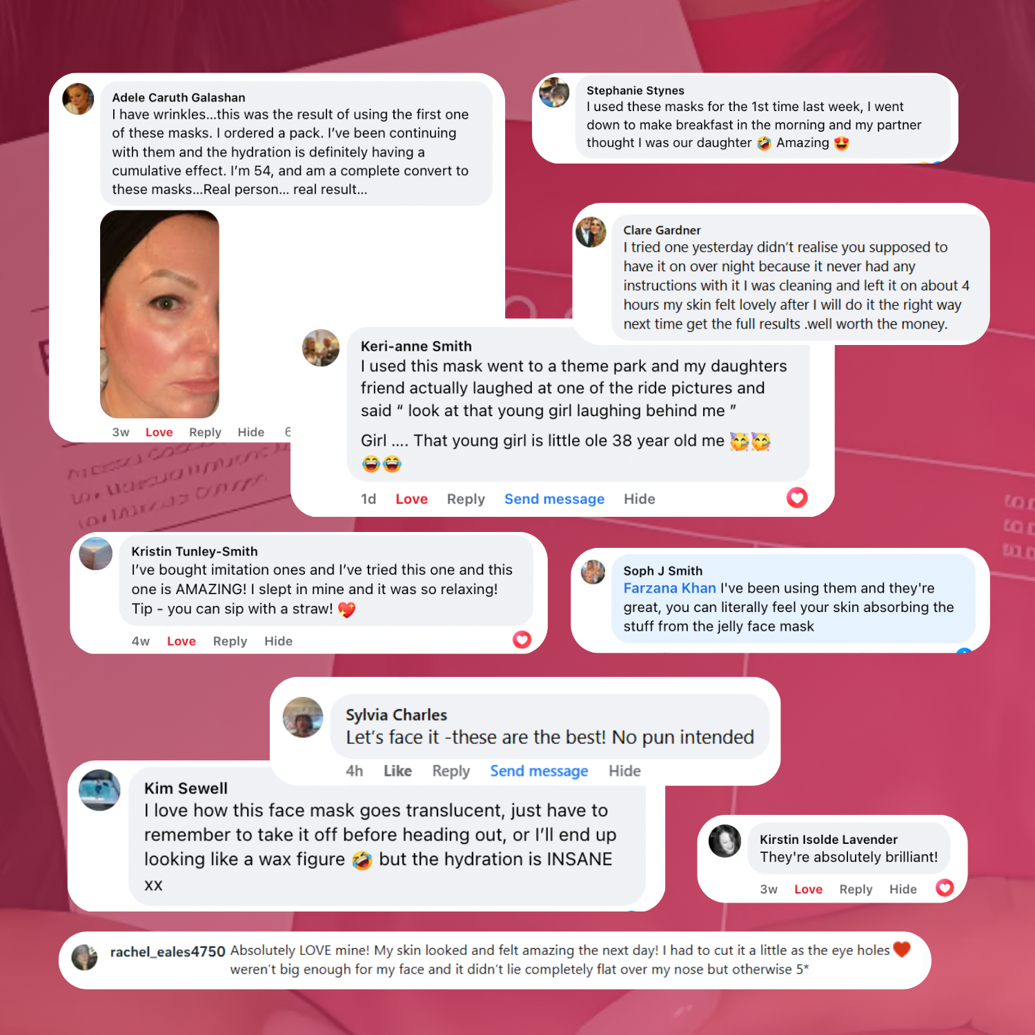 Auf frisch gereinigter, leicht feuchter Haut anwenden. Sanft über die Gesichtskonturen streichen. Ein wenig Rutschen ist normal, da die Formel reich an Serum ist – das unterstützt die Aufnahme. Manche Nutzer entspannen sich oder legen sich hin, während die Maske wirkt, um den Effekt zu intensivieren.