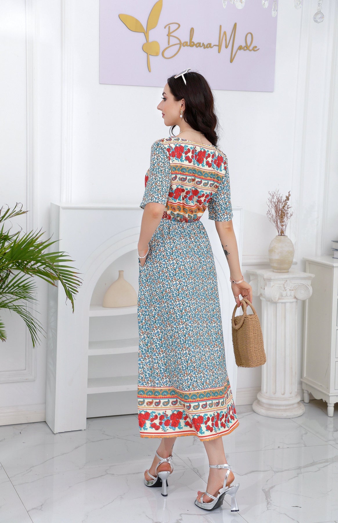 Helga - Besonderes Midikleid mit Rundhalsausschnitt