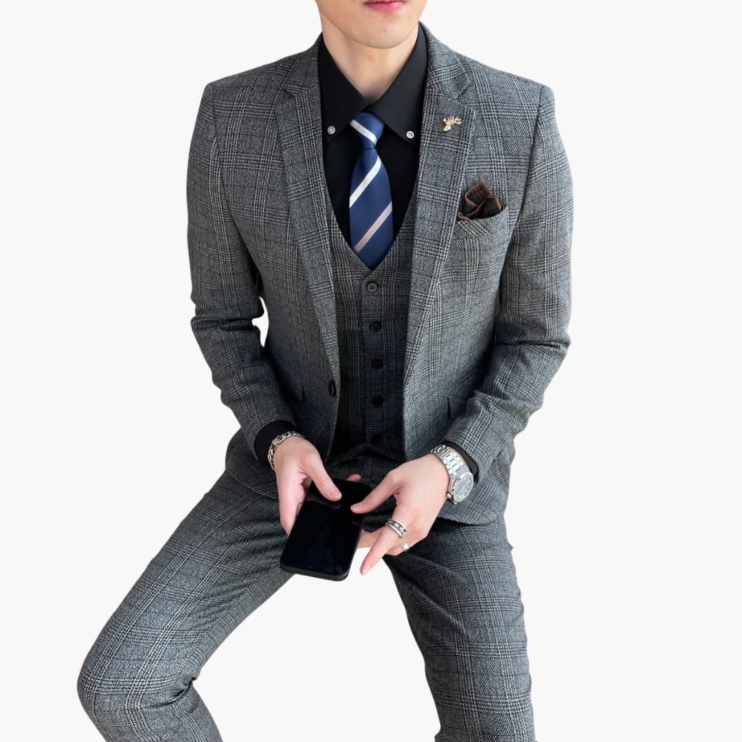 Herren Anzug dreiteilig mit Karomuster für jede Jahreszeit