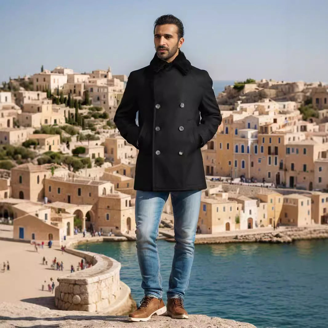 • Design: Das doppelte Knopfdesign und der auffällige Kragen verleihen der Jacke einen eleganten Look, der ideal für lässige und formelle Anlässe ist.