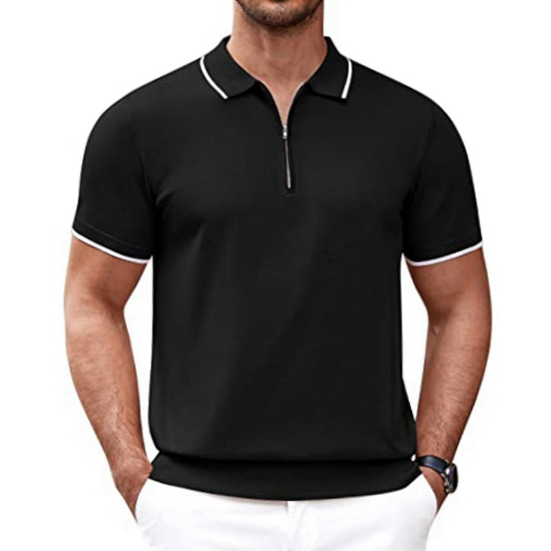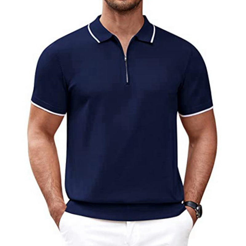 Herren modernes Kurzarm-Polo mit feinem Reißverschluss Aliams