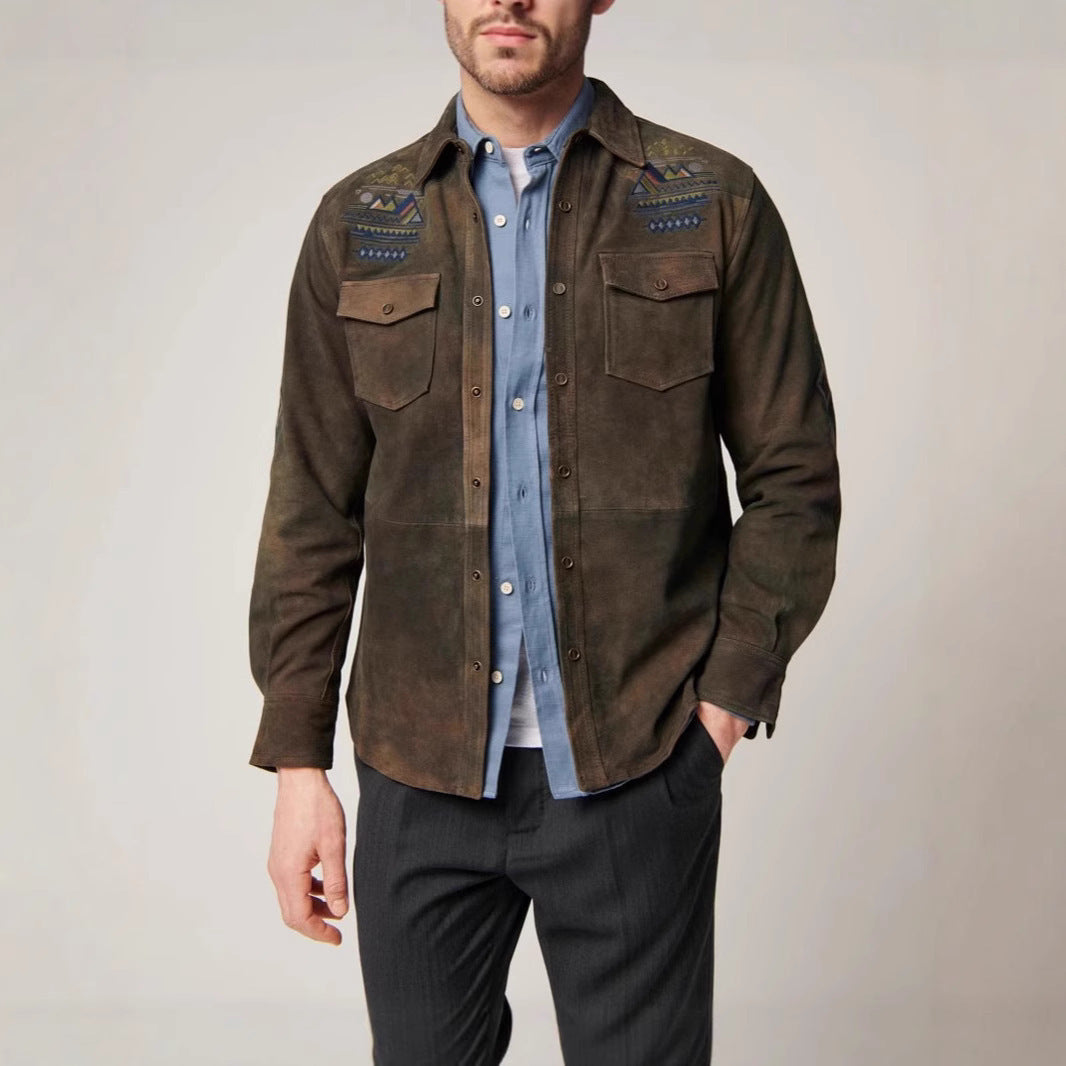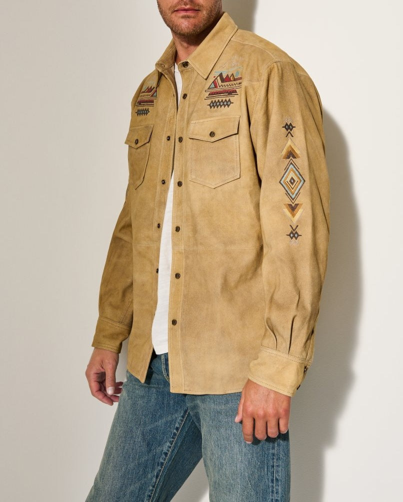 Herren Wildlederhemd mit detaillierten Ethno-Stickereien Aliams