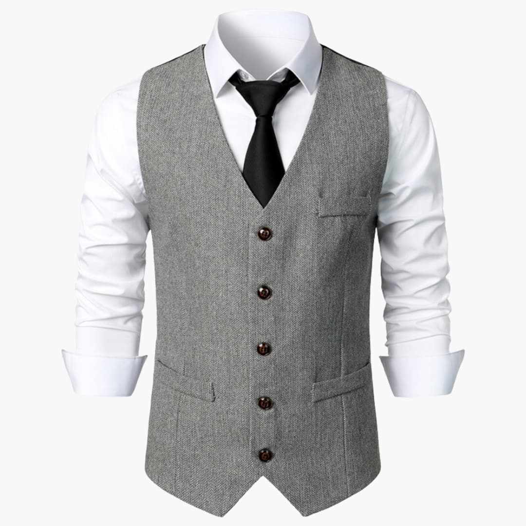 Diese klassische Herrenweste vereint ein markantes Fischgrätenmuster mit einer strukturierten Passform, die sich ideal für festliche Anlässe wie das Oktoberfest eignet. Sie ist für Herren entworfen, die eine vielseitige Weste suchen, die sich das ganze Jahr über tragen lässt und sowohl allein als auch in Kombination mit weiteren Kleidungsstücken überzeugt.