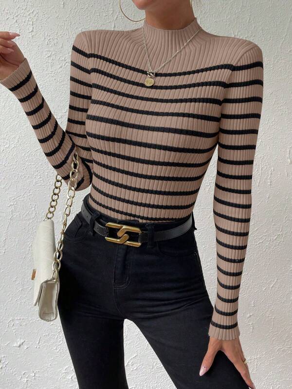 Hilda | Gestreiftes Musterpullover Mit Aufrechter Hals