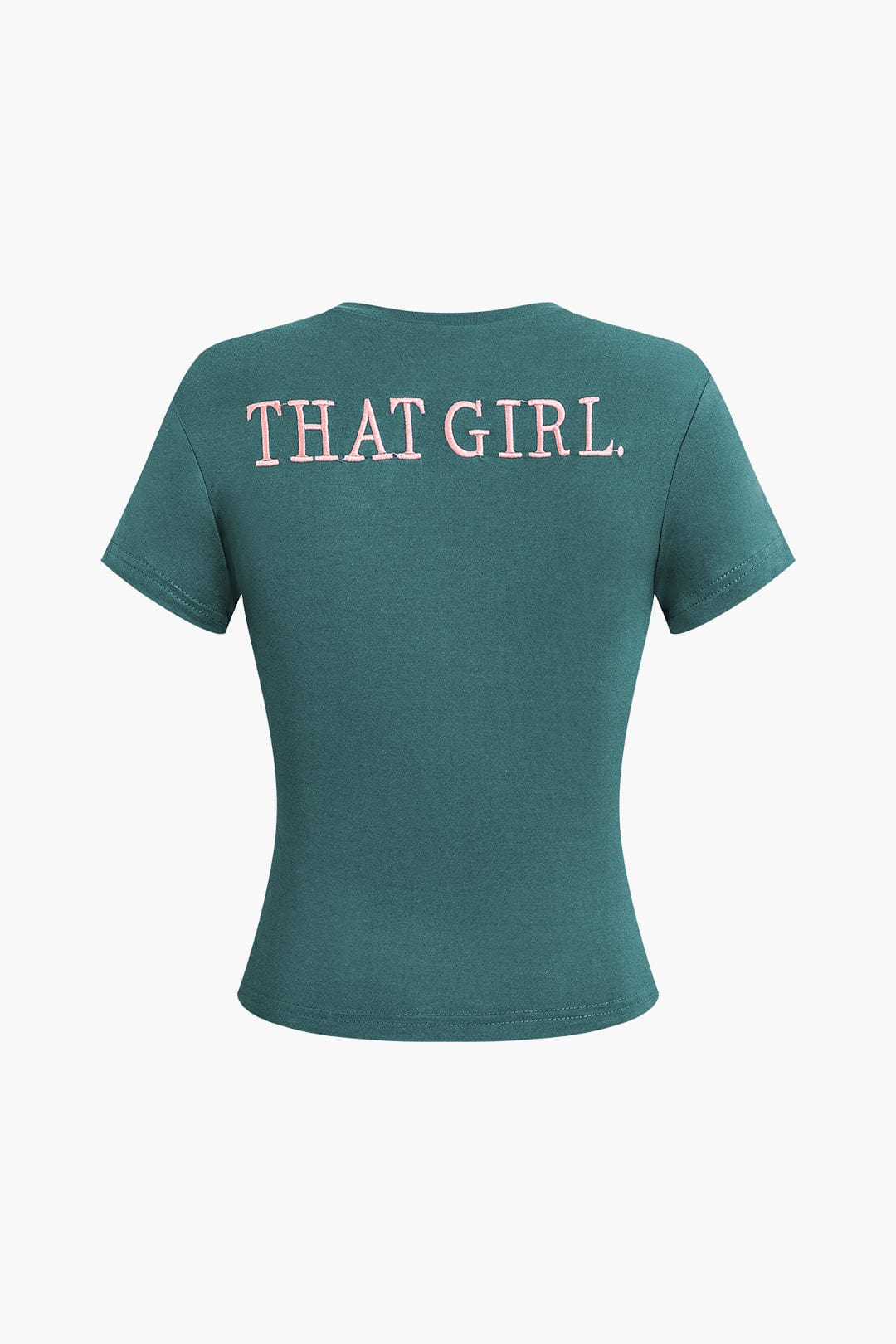 1. Stylisches T-Shirt mit Schriftzug – Ein moderner Look mit sportlicher Note.