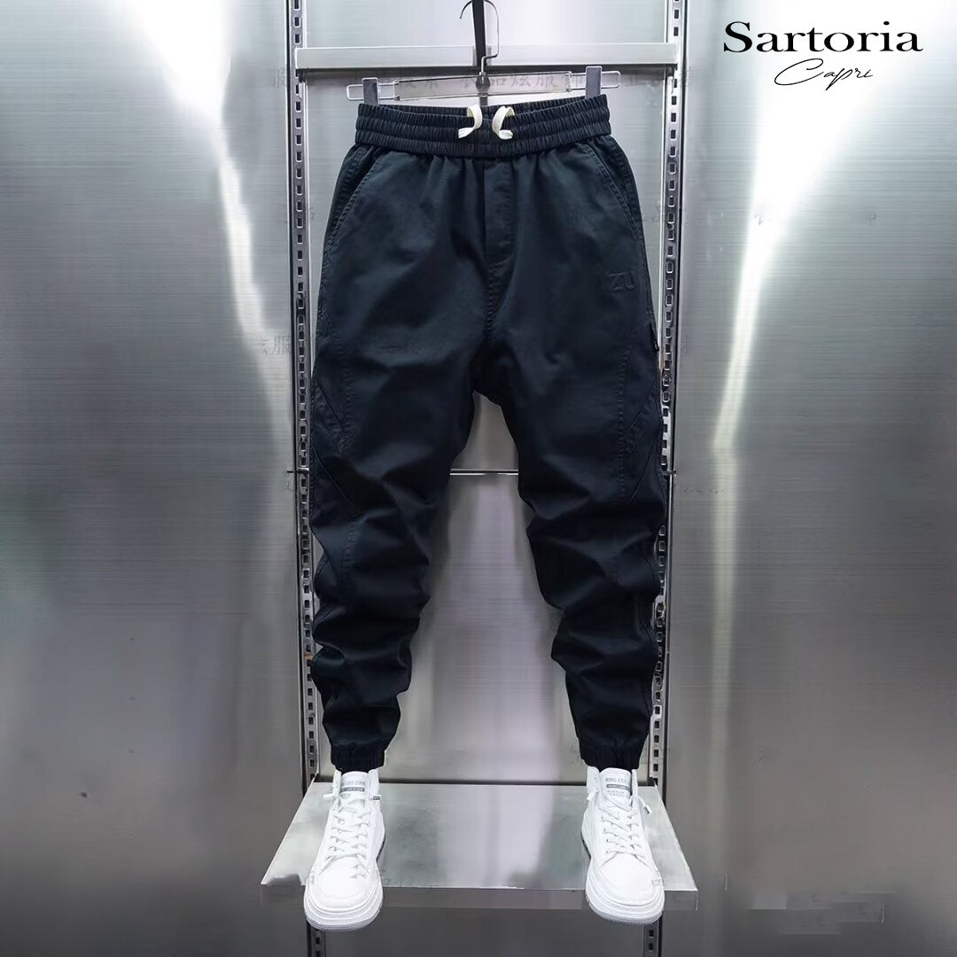 Die Jona-Hosen verfügen über ein zeitgemäßes und minimalistisches Design, perfekt für diejenigen, die einen anspruchsvollen Stil mit modernem Touch suchen. Hergestellt aus einem dunklen und glatten Stoff, verbinden diese Hosen eine elegante Silhouette mit sportlichen Details, wie dem elastischen Bund mit Knöpfen, der einen bequemen und vielseitigen Sitz bietet. Die seitlichen Taschen sorgen für Praktikabilität, während der taillierte Saum eine saubere Linie gewährleistet, die perfekt zu Sneakers oder eleganten Schuhen passt.