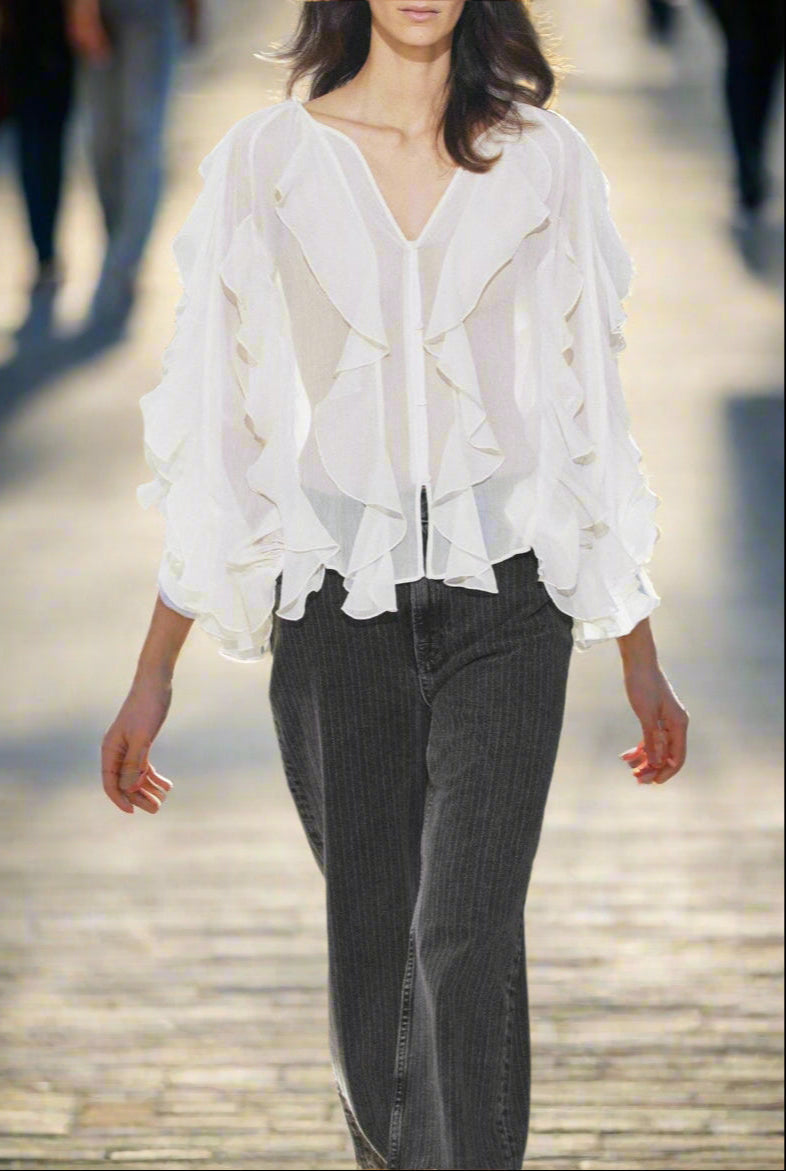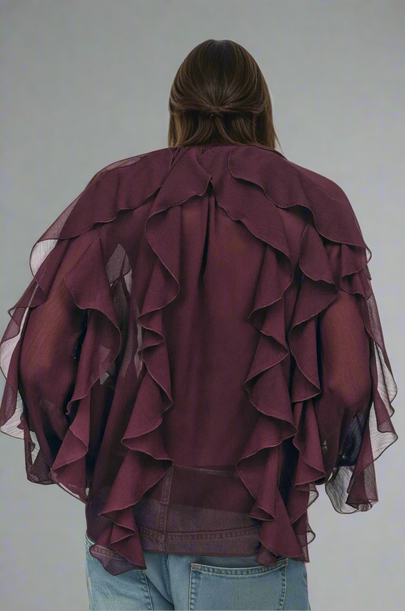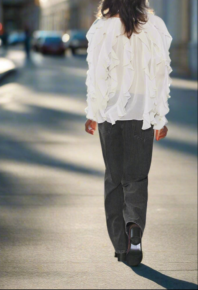 Diese Rüschenbluse aus leichtem, fließendem Stoff verleiht dir im Handumdrehen eine elegante und feminin Ausstrahlung. Die zarten Volants betonen die Scherenschnitt auf stilvolle Weise und machen die Bluse zum perfekten Begleiter – ob im Alltag oder zu besonderen Anlässen. Dank der lockeren Passform sorgt sie für hohen Tragekomfort und schmeichelt jeder Figur. Jetzt entdecken und dich von deinem Spiegelbild begeistern lassen.
