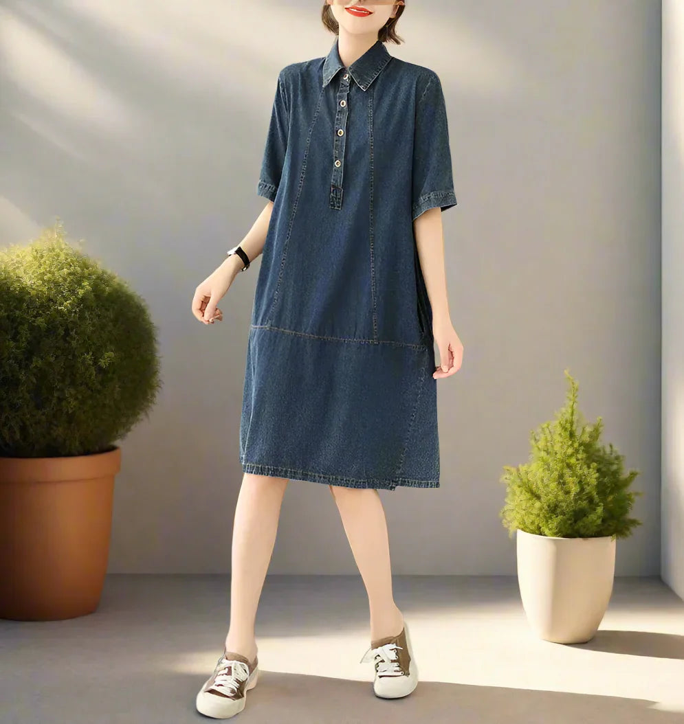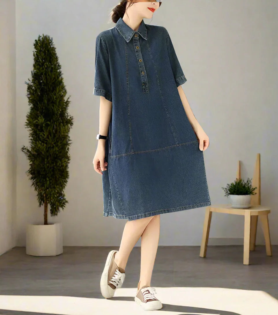 Lässiges Vintage Damen Jeanskleid Knielang Halber Arm