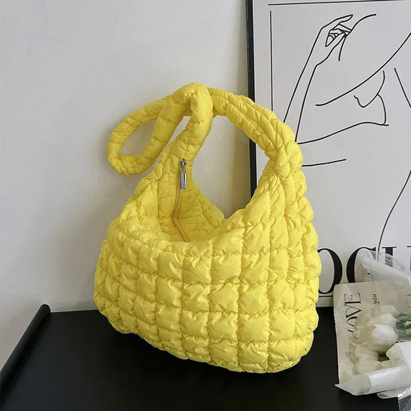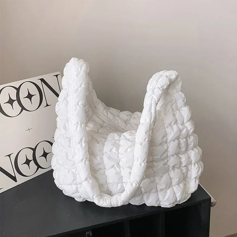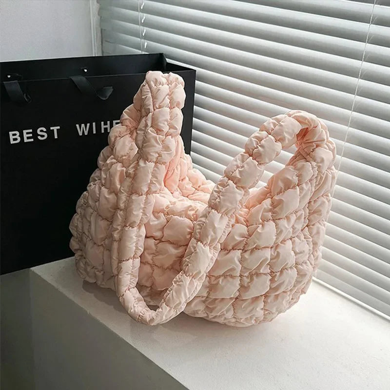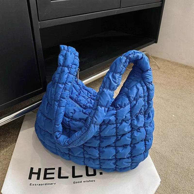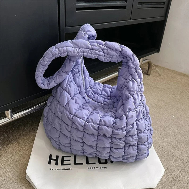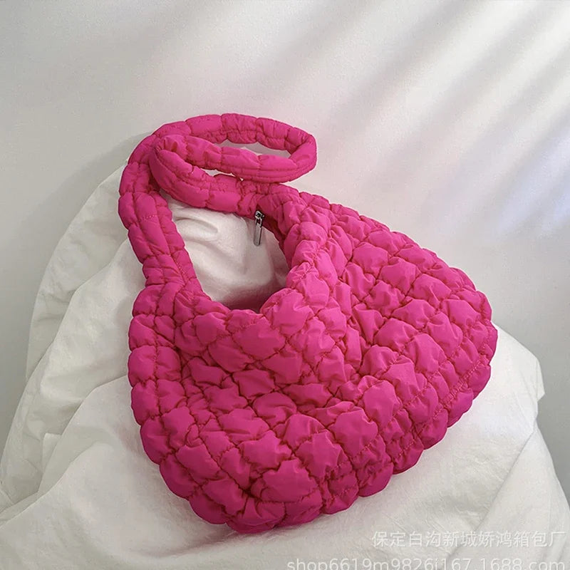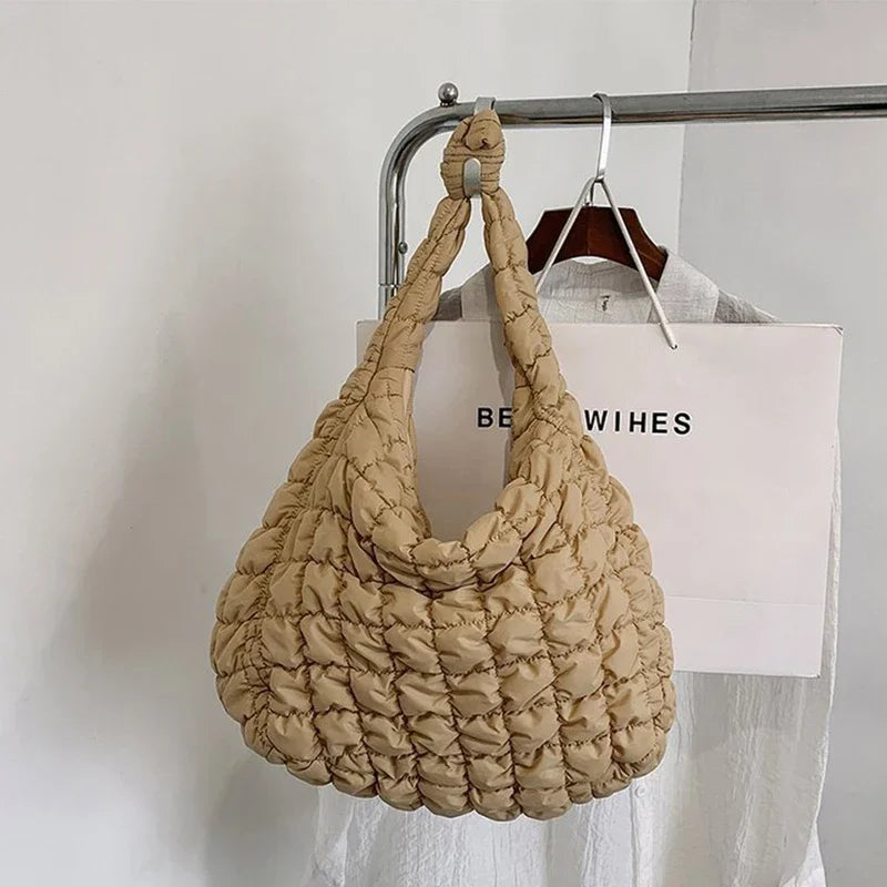 diese voluminöse puffer bag vereint trendiges design mit funktionalität. das gesteppt-gepolsterte material sorgt für einen modernen, lässigen look, während der weiche griff und das leichte gewicht höchsten komfort bieten. ideal für den alltag, reisen oder als fashion-statement – auffällig, praktisch und ultra-modern.