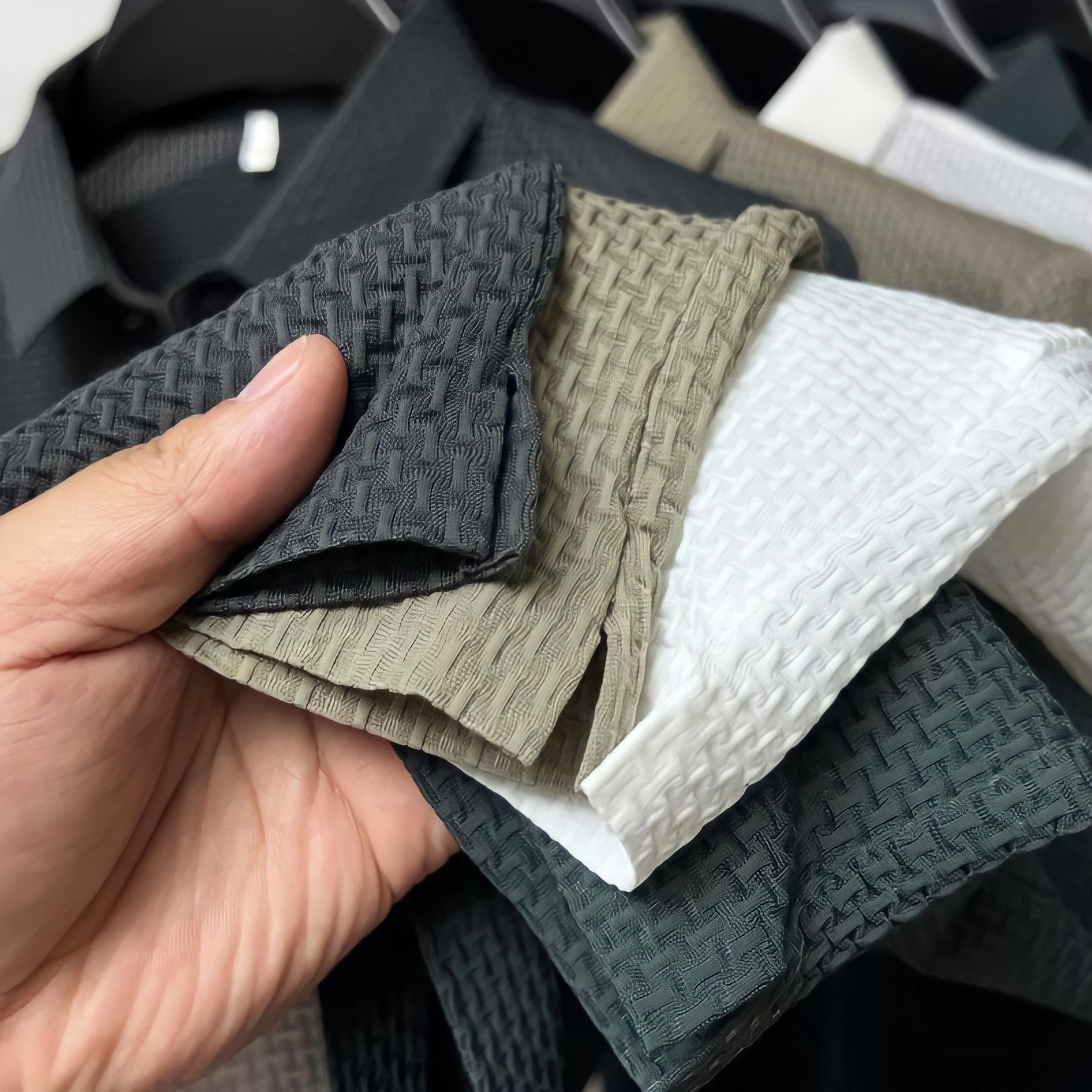 Genießen Sie ein einzigartiges, strukturiertes Material, das sich luxuriös auf der Haut anfühlt und dennoch den Strapazen des Alltags standhält.
