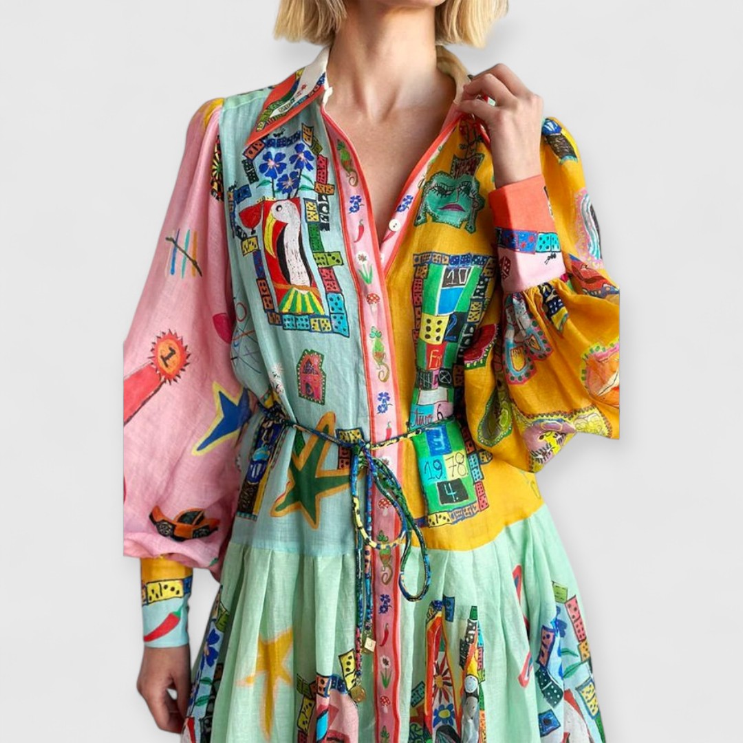 Unser beliebtes Leonie Kleid vereint lässige Eleganz mit frechem Farbblock-Mix. Mit bequemer Passform und Ballonärmeln bringt es Style und Komfort in einem – ob beim City-Trip oder im Büro.