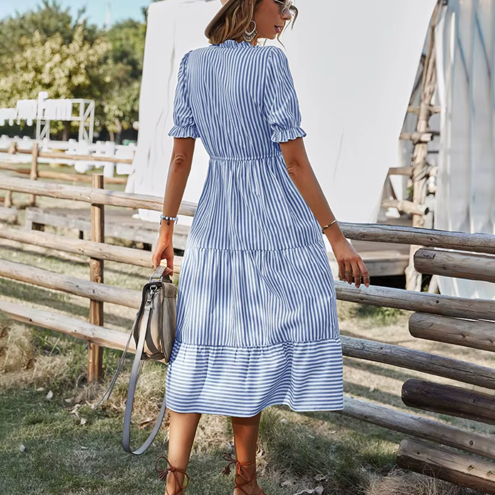 Leyna - Romantisches Landhauskleid mit Streifen & Volants