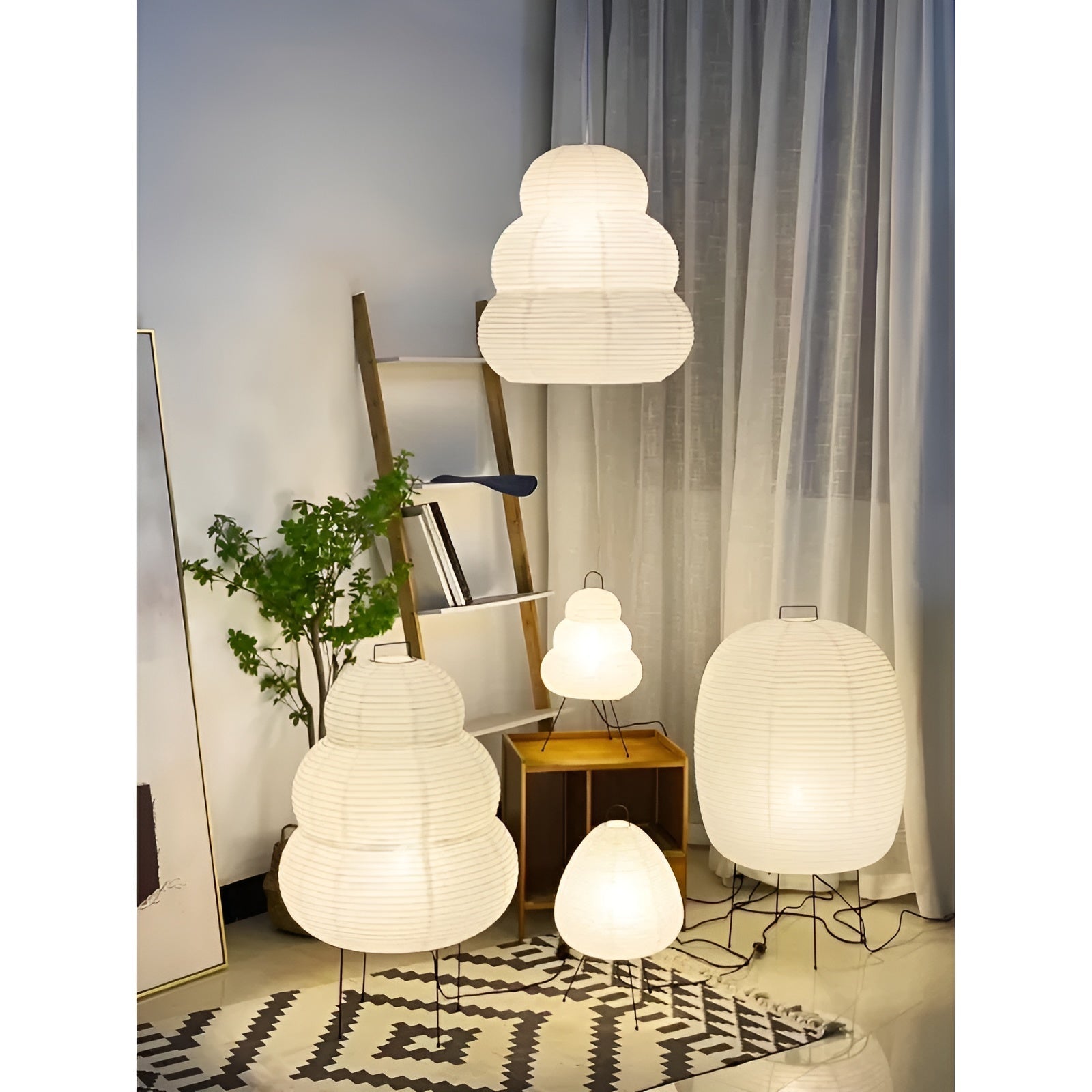 Die sanften, diffusen Lichtstrahlen der LED-Technologie durchdringen das Reispapier und erzeugen eine entspannende, beruhigende Beleuchtung, die perfekt für entspannte Abende oder inspirierende Lesestunden geeignet ist. Ihre zeitlose Form und die natürlichen Materialien machen diese Lampe zu einem echten Blickfang und sorgen dafür, dass jeder Raum eine einzigartige Note erhält.