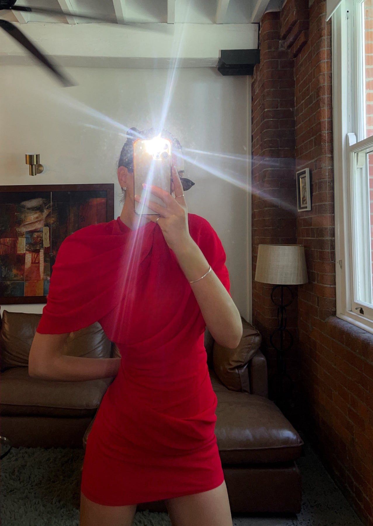 • Einzigartige Details: Die auffällige Drapierung und der elegante Schnitt machen dieses Kleid zu einem echten Blickfang.