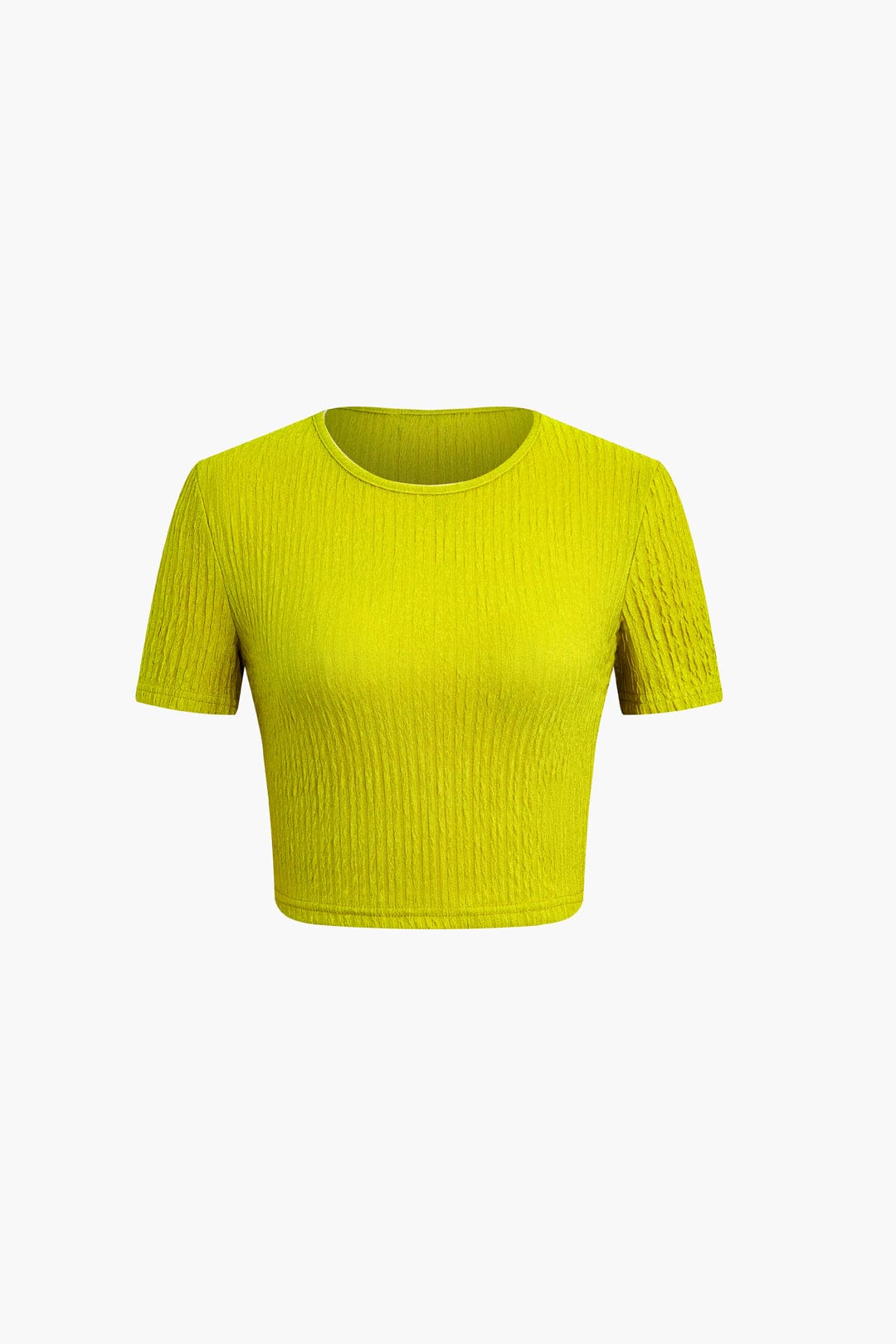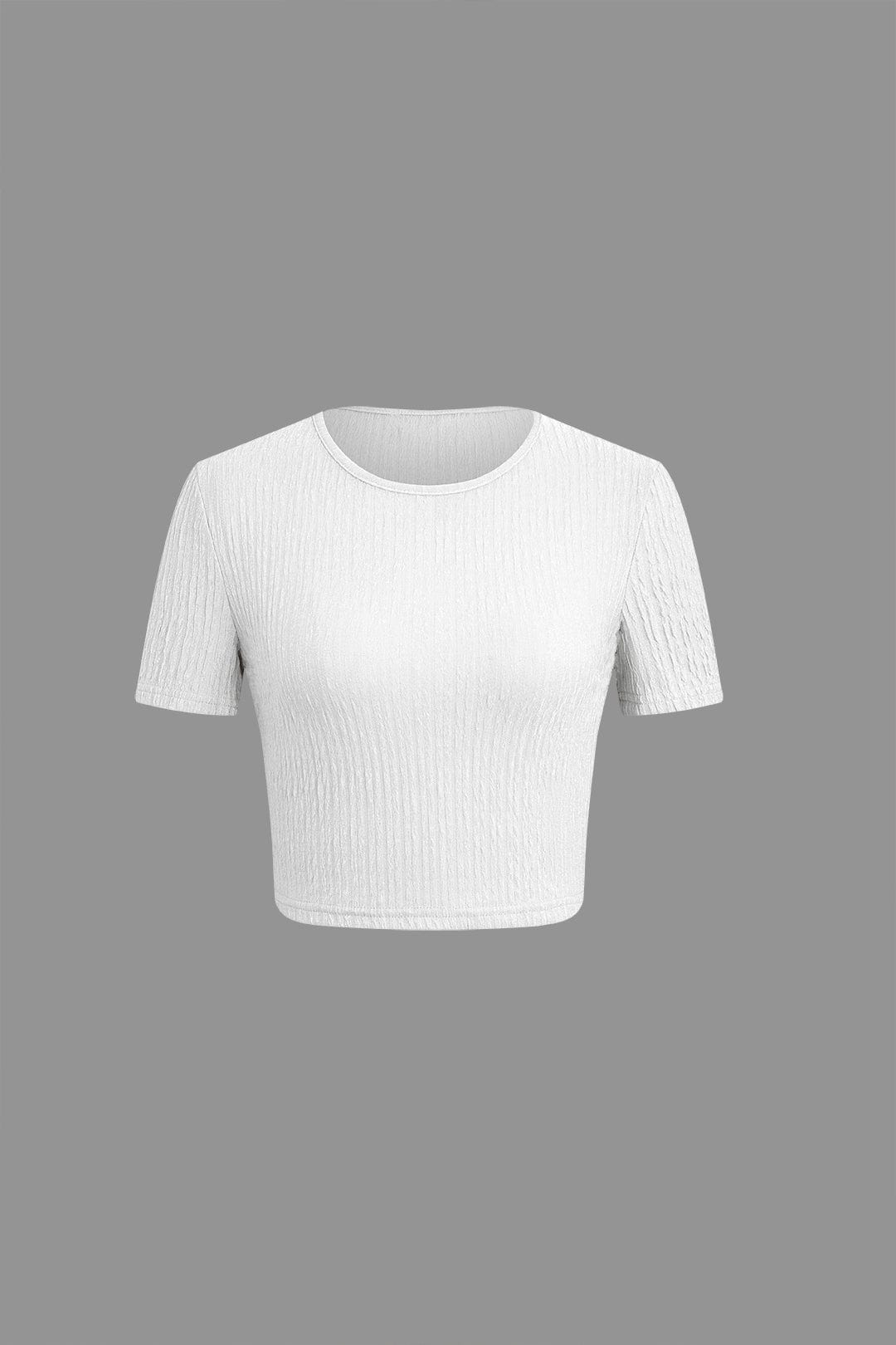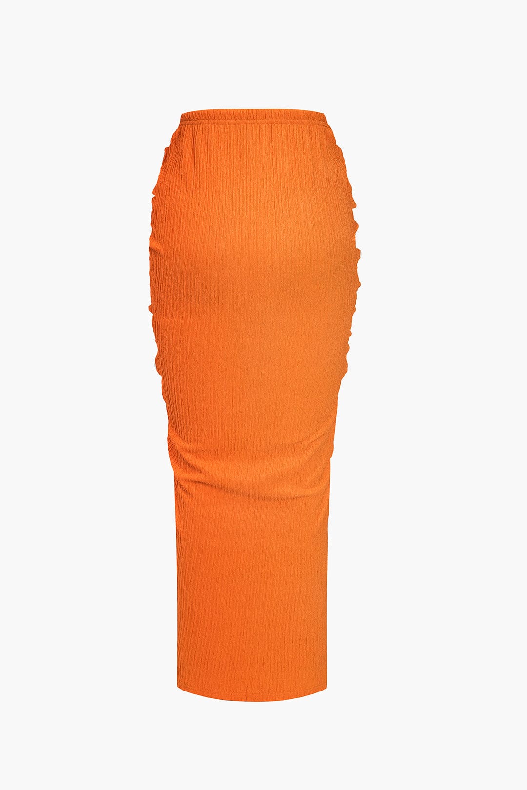 Das Maya Set kombiniert einen klassischen Rundhals-Crop-Top mit einem eleganten, gerafften Rock für einen trendigen und femininen Look. Der geraffte Bund mit Kordelzug betont die Taille und sorgt für eine schmeichelhafte Passform. Perfekt für Sommerpartys, City-Trips oder entspannte Abende.