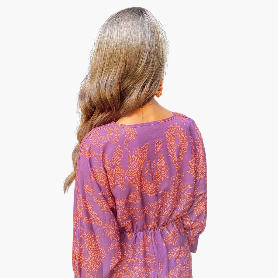 Tauchen Sie ein in die Leichtigkeit des Bohemian-Chics mit unserem Midikleid für Damen mit Blumenmuster, Langarm und V-Ausschnitt. Dieses Kleid vereint lebendige florale Prints mit einem fließenden, femininen Schnitt – perfekt für Frauen, die Stil, Komfort und Nachhaltigkeit lieben. Ob beim Stadtbummel, beim Gartenfest oder bei einem entspannten Abend dieses Kleid begleitet Sie stilvoll durch jeden Moment.
