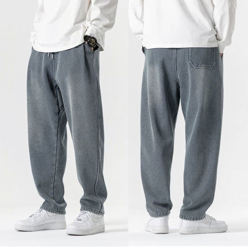 Diese lässigen Hosen bieten die perfekte Kombination aus Komfort und Vielseitigkeit. Sie sind aus hochwertigem Stoff mit einer weichen Textur gefertigt und ideal für legere oder sportliche Outfits. Der weite Schnitt und das elastische Detail am Bund mit verstellbarem Kordelzug sorgen für eine bequeme und anpassbare Passform.
