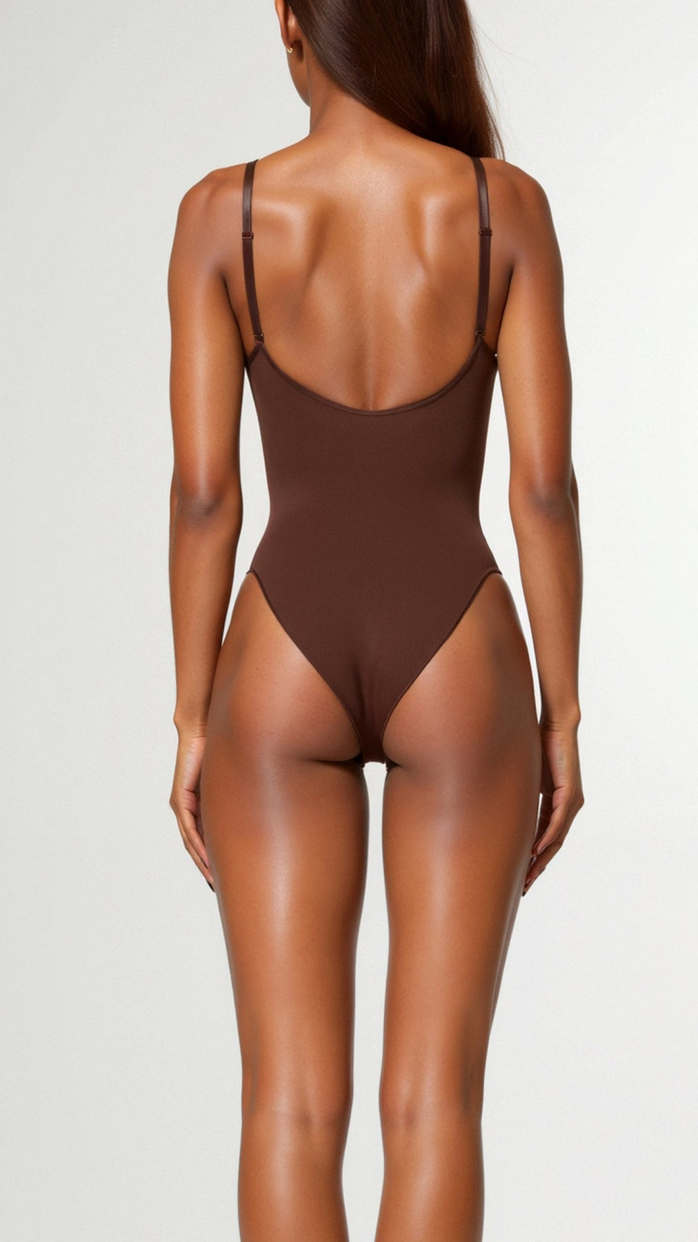 Der Body ist schlichter Minimalismus in Perfektion. Dieses Gefühl wie eine zweite Haut besticht durch einen schmeichelnden Rundhalsausschnitt mit dezenten Rüschendetails, während der hohe Beinausschnitt für einen optisch streckenden Effekt sorgt. Die nahtlose Konstruktion und die stützenden Träger beweisen, dass Schlichtheit sensationell sein kann.