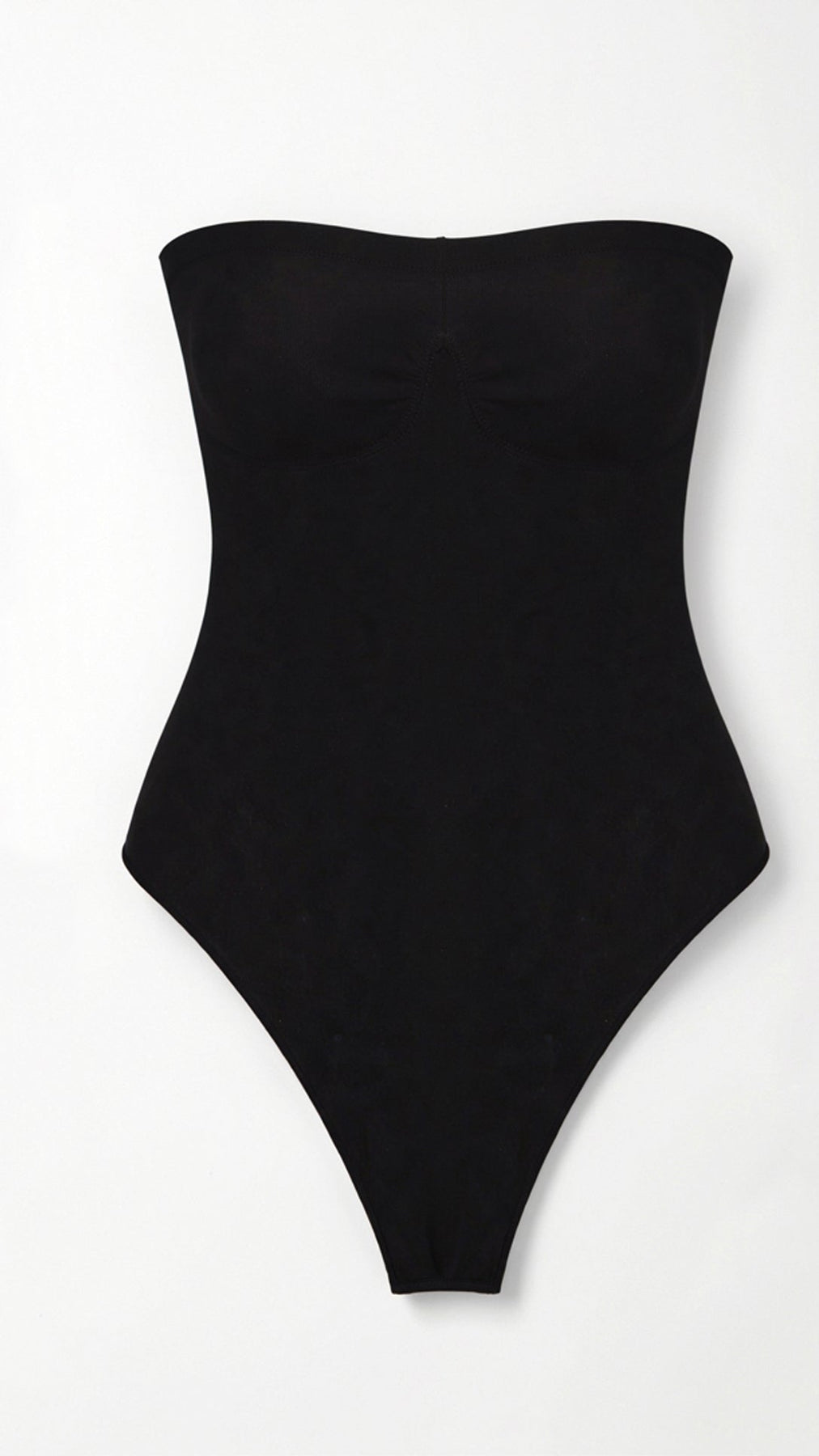 Schaffen Sie endlose Styling-Möglichkeiten – der nahtlose trägerlose Tanga-Bodysuit verleiht jedem Outfit selbstbewussten Halt.