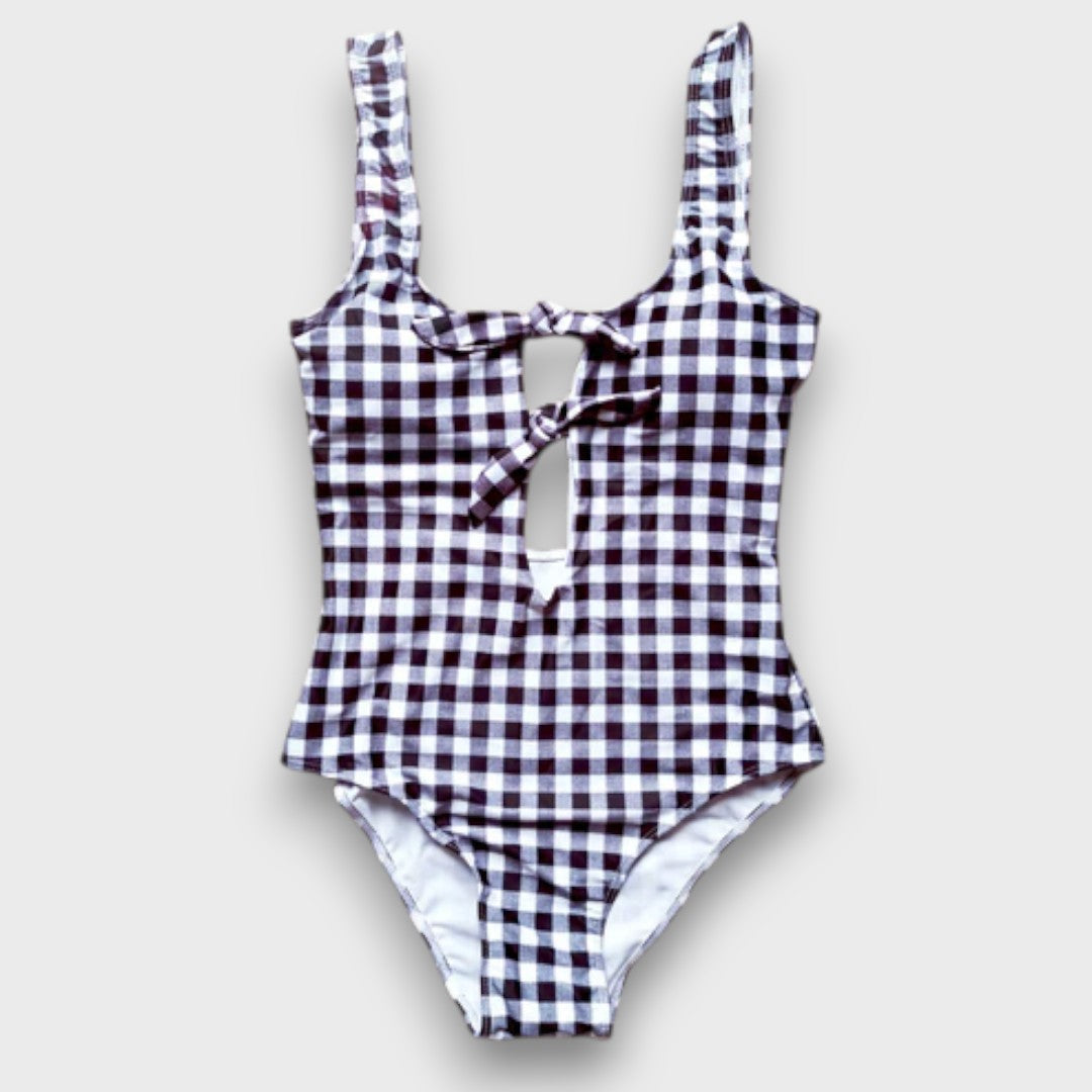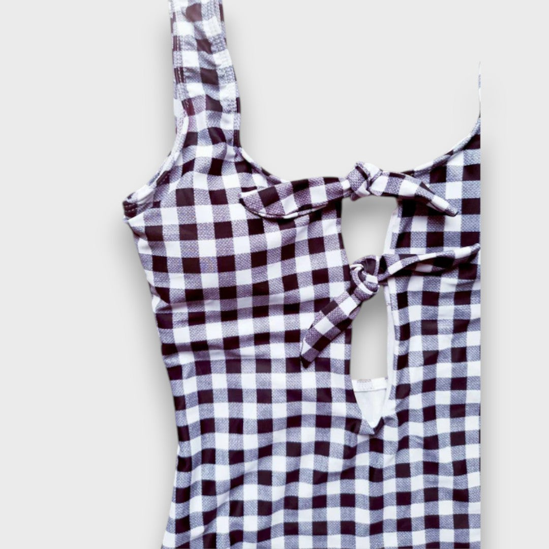 Noa ist ein Badeanzug, der sommerliche Leichtigkeit mit charmanten Details verbindet. Die verspielte Schleife im Vorderteil und das dezente Cut-out bringen Frische in den Look, während der klassische Schnitt und das feine Karomuster für Natürlichkeit und Stil sorgen. Für Tage, an denen du dich frei, schön und ganz bei dir fühlen willst.