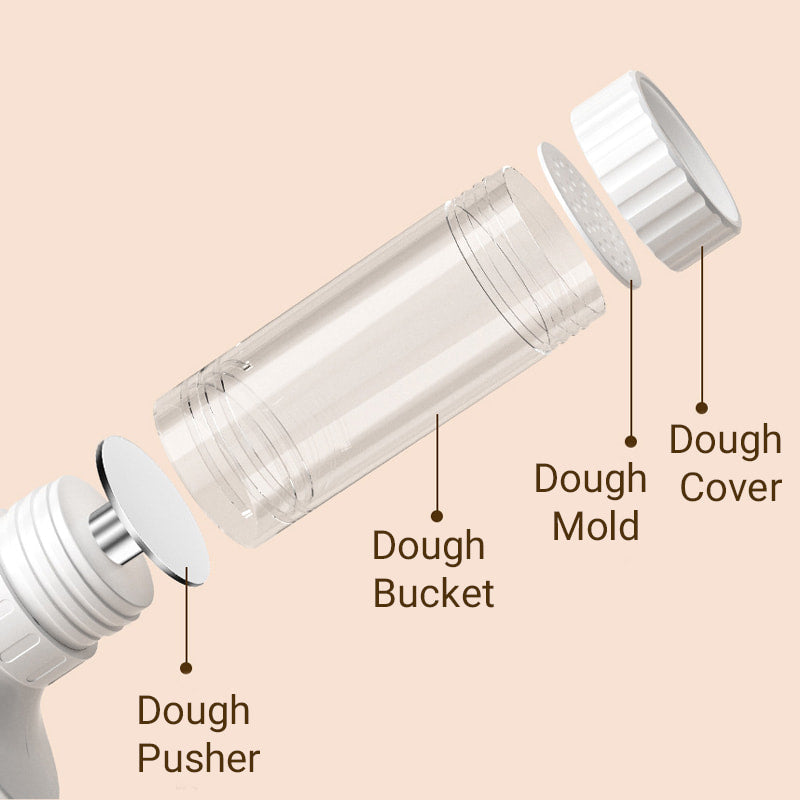 ABNEHMBARE TEILE: Mit den abnehmbaren, leicht zu reinigenden Teilen aus lebensmittelechtem PC-Material ist die Reinigung ein Kinderspiel. Der reibungslose Extrusionsprozess verhindert Verstopfungen, während die abnehmbaren Teile eine schnelle Reinigung und bequeme Lagerung ermöglichen.