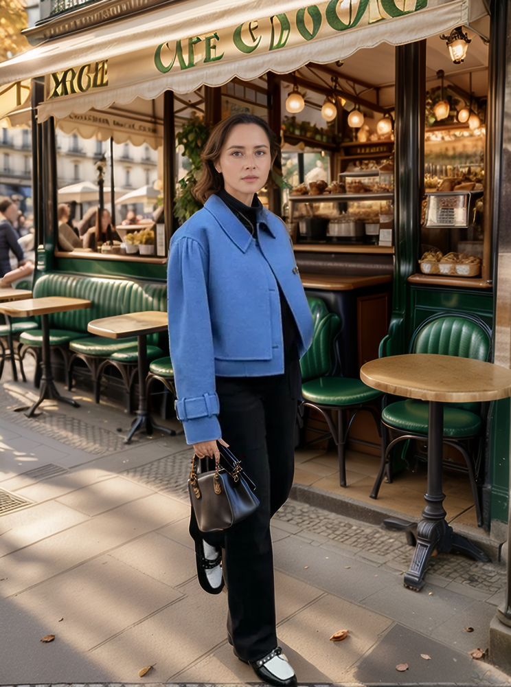 Sabine | Einfarbiger Kurzmantel aus Wolle mit zwei Knöpfen