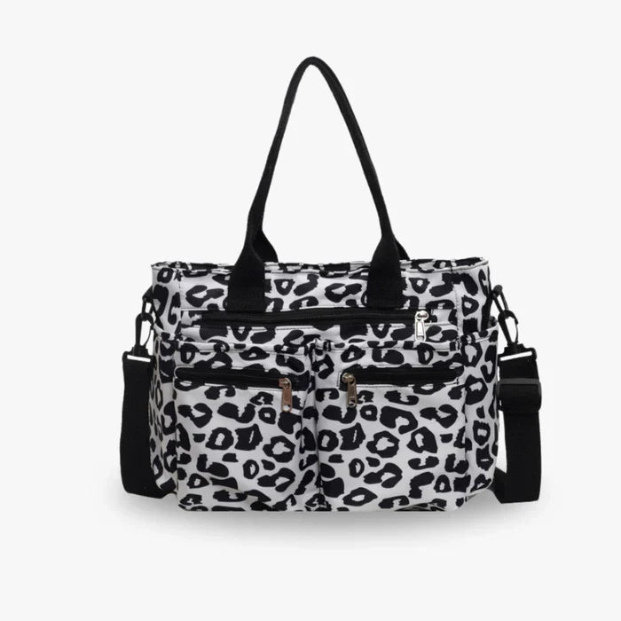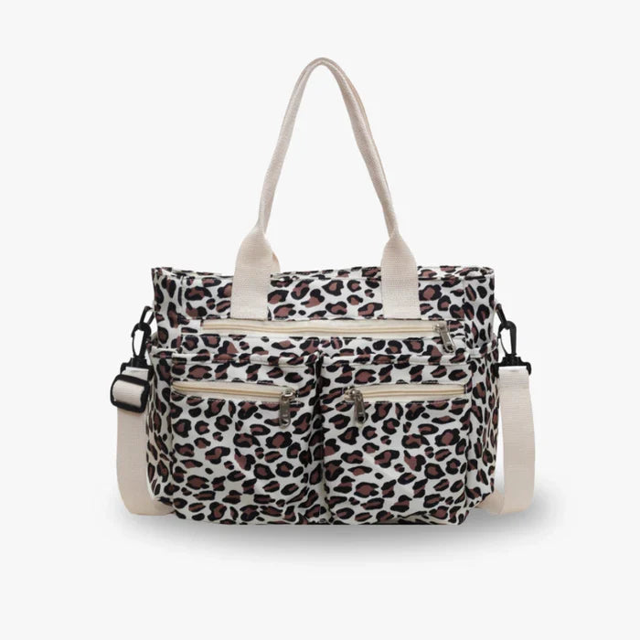 Diese leichte, geräumige Tasche aus Canvas mit Animal-Print bietet genug Platz für all deine Essentials. Mit weichem Innenfutter, praktischen Innenfächern und drei zusätzlichen Reißverschlusstaschen auf der Vorderseite. Dank robuster Griffe und verstellbarem Schulterriemen perfekt für den Alltag!