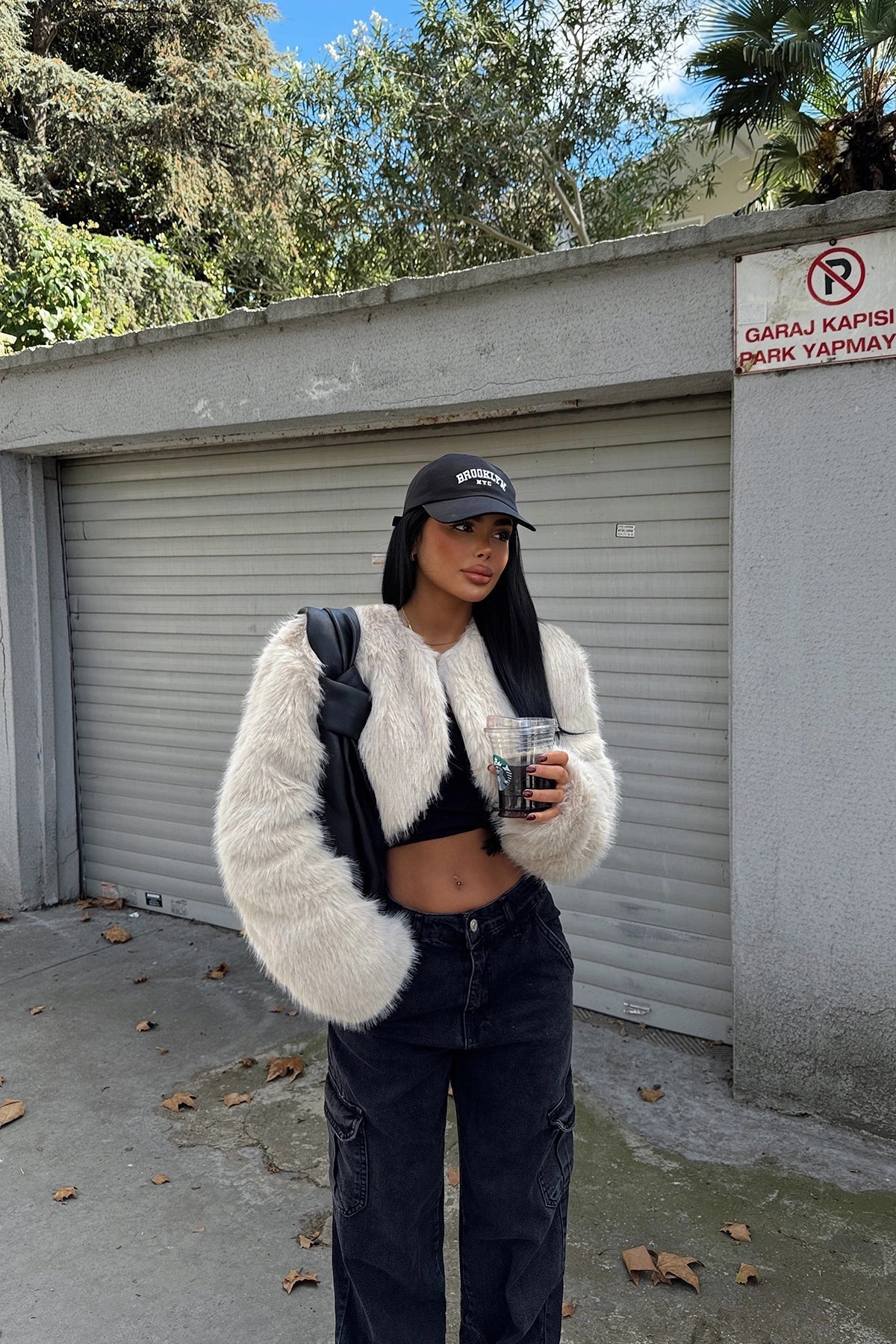 Sarah | Kurzer Pelzmantel in Creme: Eleganz und Luxus in perfekter Harmonie